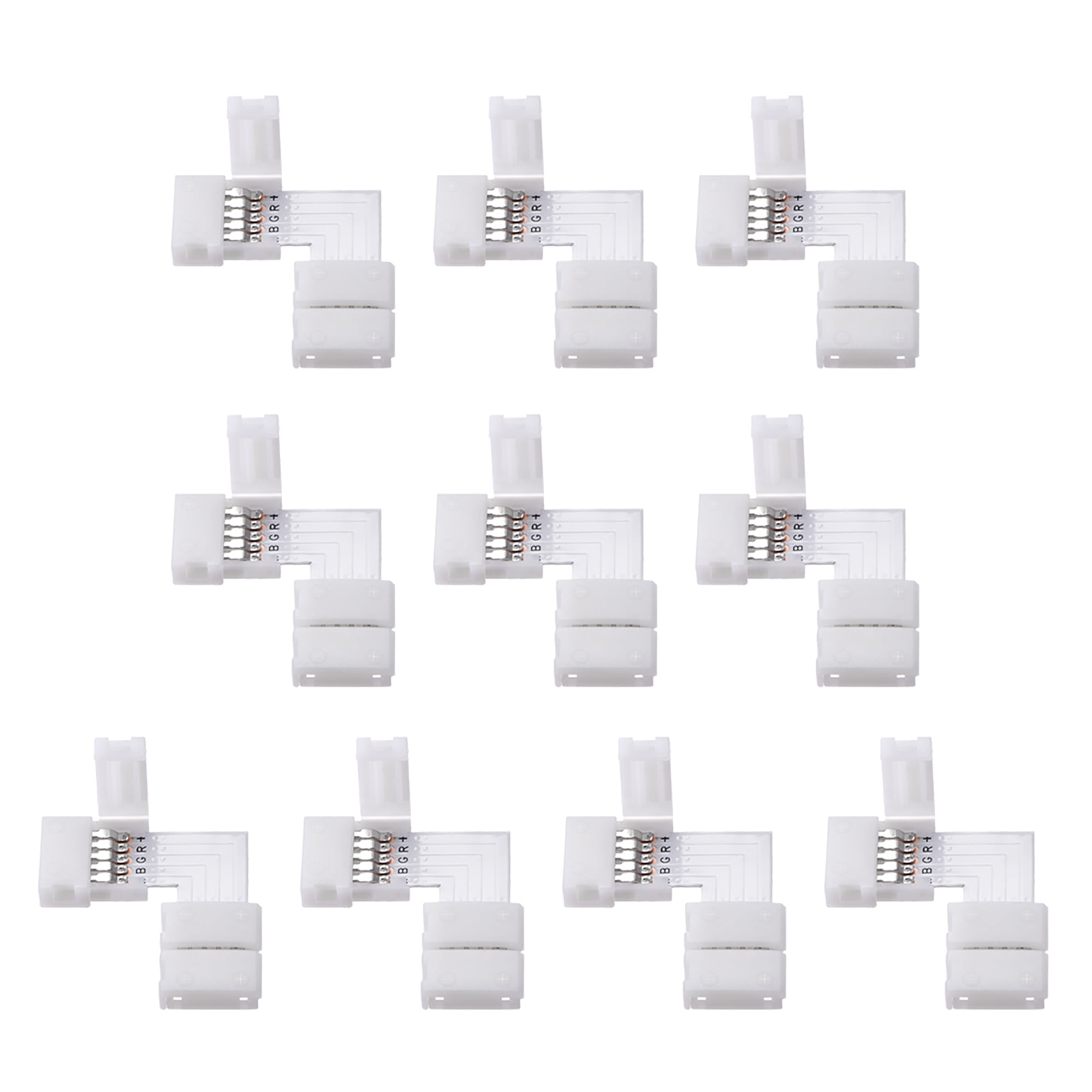 1.These L shape connectors for RGBW multi-Color light strips comes with 2 easy-clasp connectors and a 90 degree L shape PCB board.