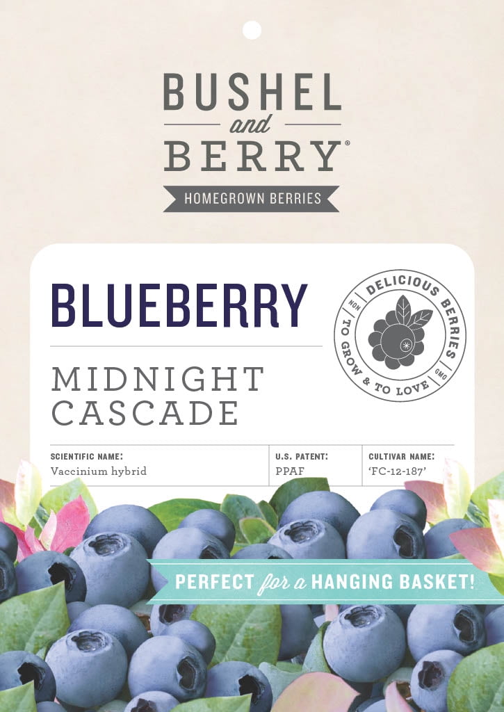 - Includes (1) Blueberry Midnight Cascade plant in a 2.5 QT grower container