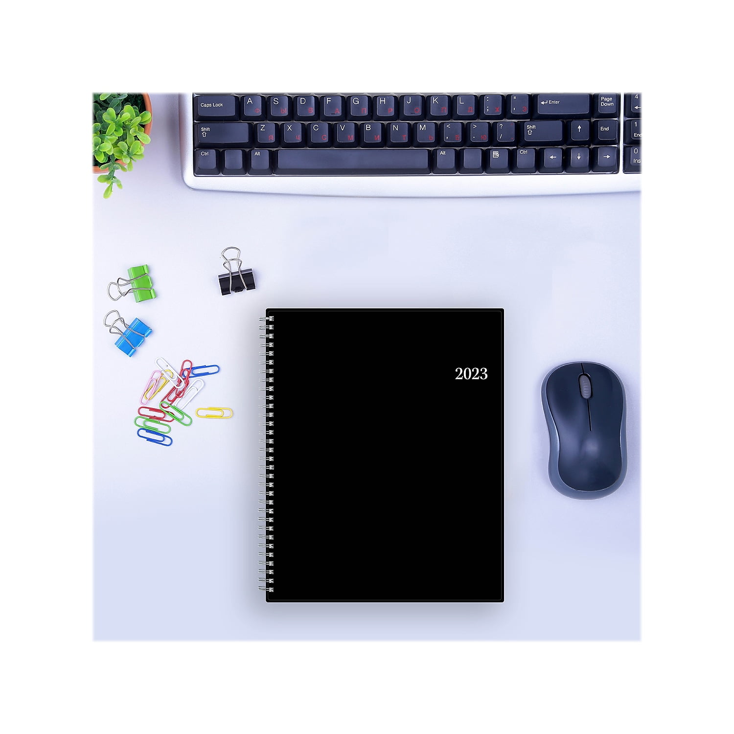 Sleek and professional, this 2023 Blue Sky classic weekly planner is office-ready and has everything you need to plan your year, such as lined weekly and monthly views for organized writing, extra note pages, and reference calendars. The solid black cover is flexible and features an Enterprise design. Dated from January 2023 to December 2023, plus bonus monthly views and yearly overview. This 2023 planner has everything you need to organize tasks and be more productive. Dimensions: 8.5" x 11". Weekly and monthly planner covers a 12-month date range from January to December 2023. Contains two-page weekly and monthly calendars with extra writing space. Comes in a solid black Enterprise design. Features a flexible cover. Includes extra notes pages, reference calendars, and yearly overview. Durable twin-wire binding to hold the pages in place. Sold as 1 Each.2023 Blue Sky Enterprise 8.5" x 11" Weekly & Monthly Planner Black (111288-23)