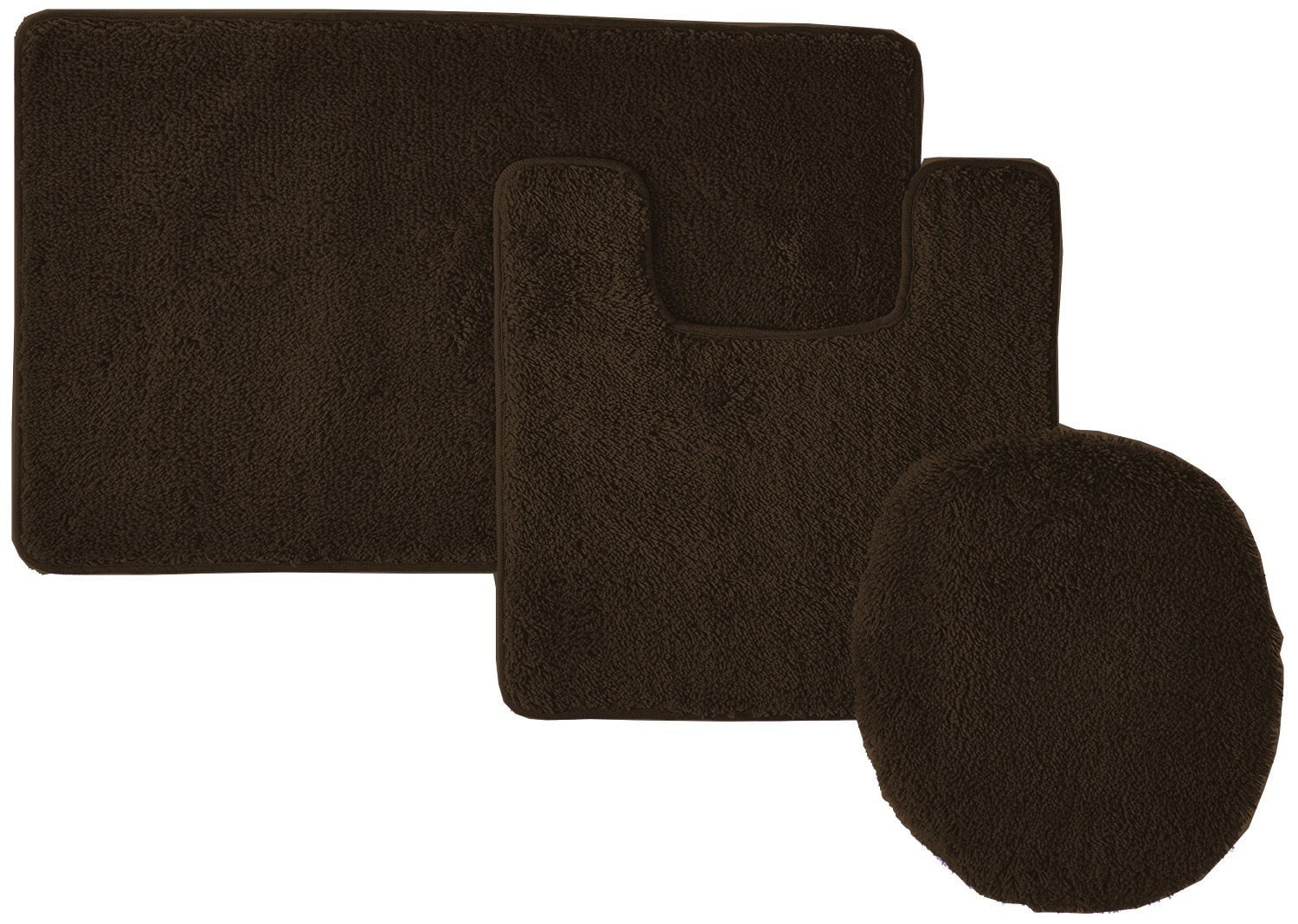 3-Piece Hailey Solid Bathroom Set Bath Mat Contour Rug Toilet Lid Cover – Chocolate Brown