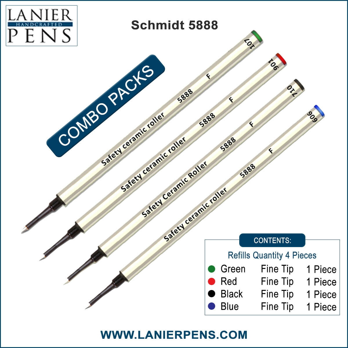 4X Schmidt 5888 F Safety Ceramic Rollerball Metal Refill Green/Red/Black/Blue Fine Tip