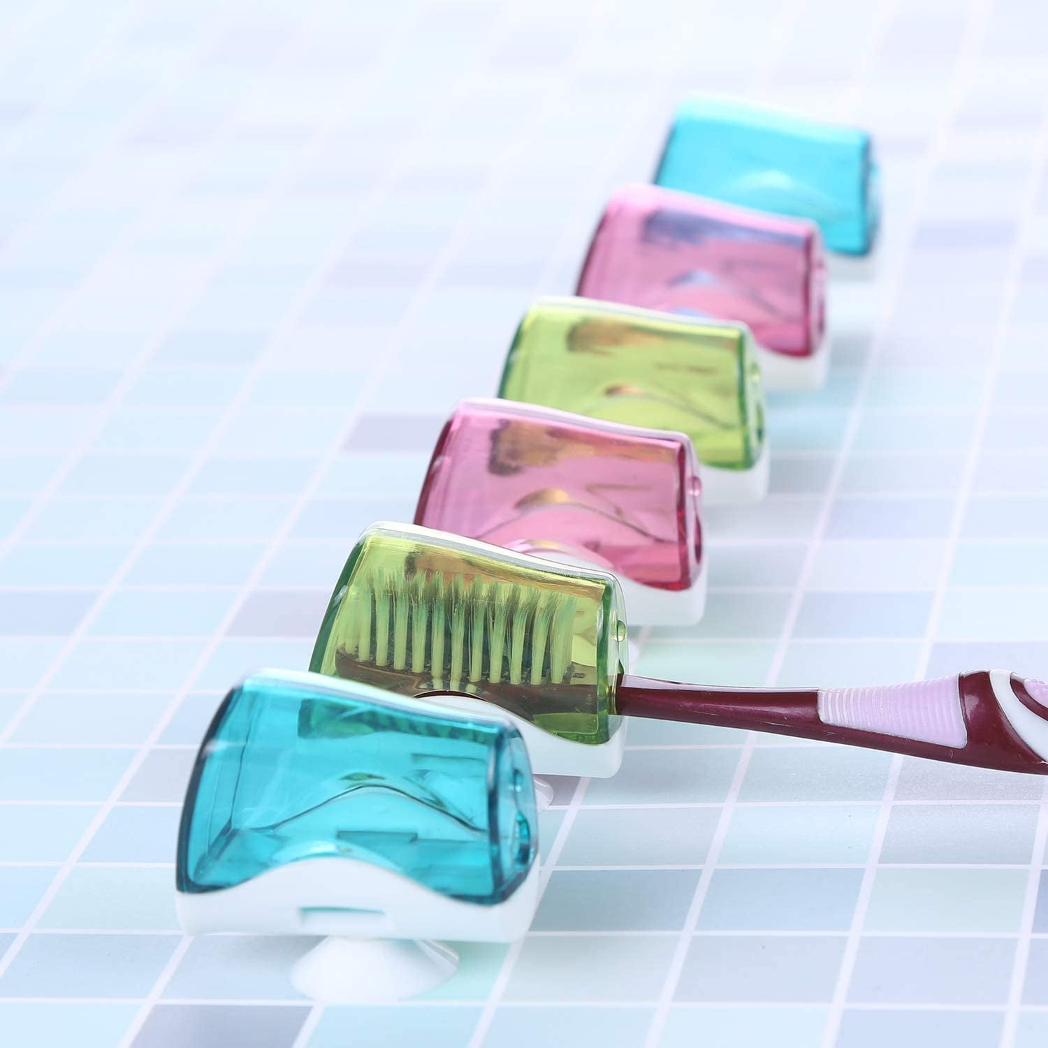 - APPLY TO: The toothbrush cap is suitable for home, traveling, office, or even as a camping toothbrush holder. you can attach to the smooth surfaces such as glass, ceramic, acrylic, marble after trip.