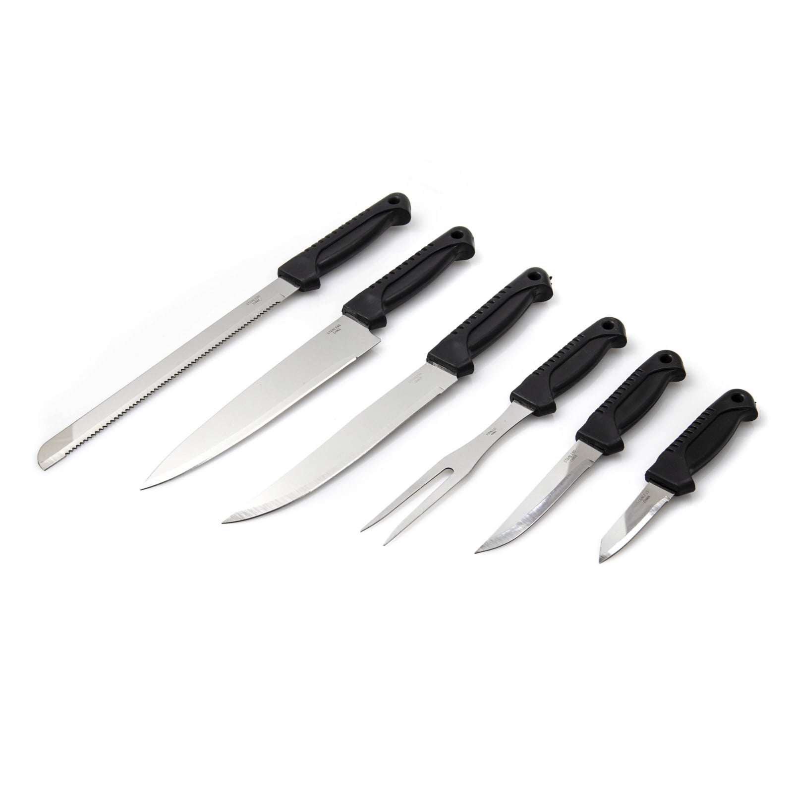 - SPECIFICATIONS – Material: Stainless steel (rust and corrosion resistant); 6 different types of knives; Handle color: black; Dishwasher safe
