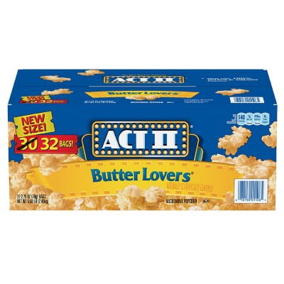 For those who love butter and salty snack foods, Act II® Butter Lovers® Microwave Popcorn (2.75 oz., 32 bags) arrives hot, fluffy and undeniably delicious from the microwave in just a matter of minutes.ACT II Butter Lovers Microwave Popcorn (2.75 oz., 32 pk.)