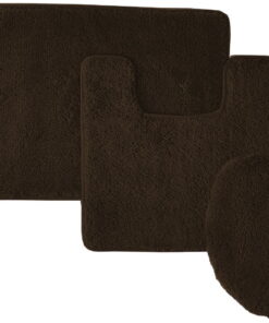 3-Piece Hailey Solid Bathroom Set Bath Mat Contour Rug Toilet Lid Cover – Chocolate Brown