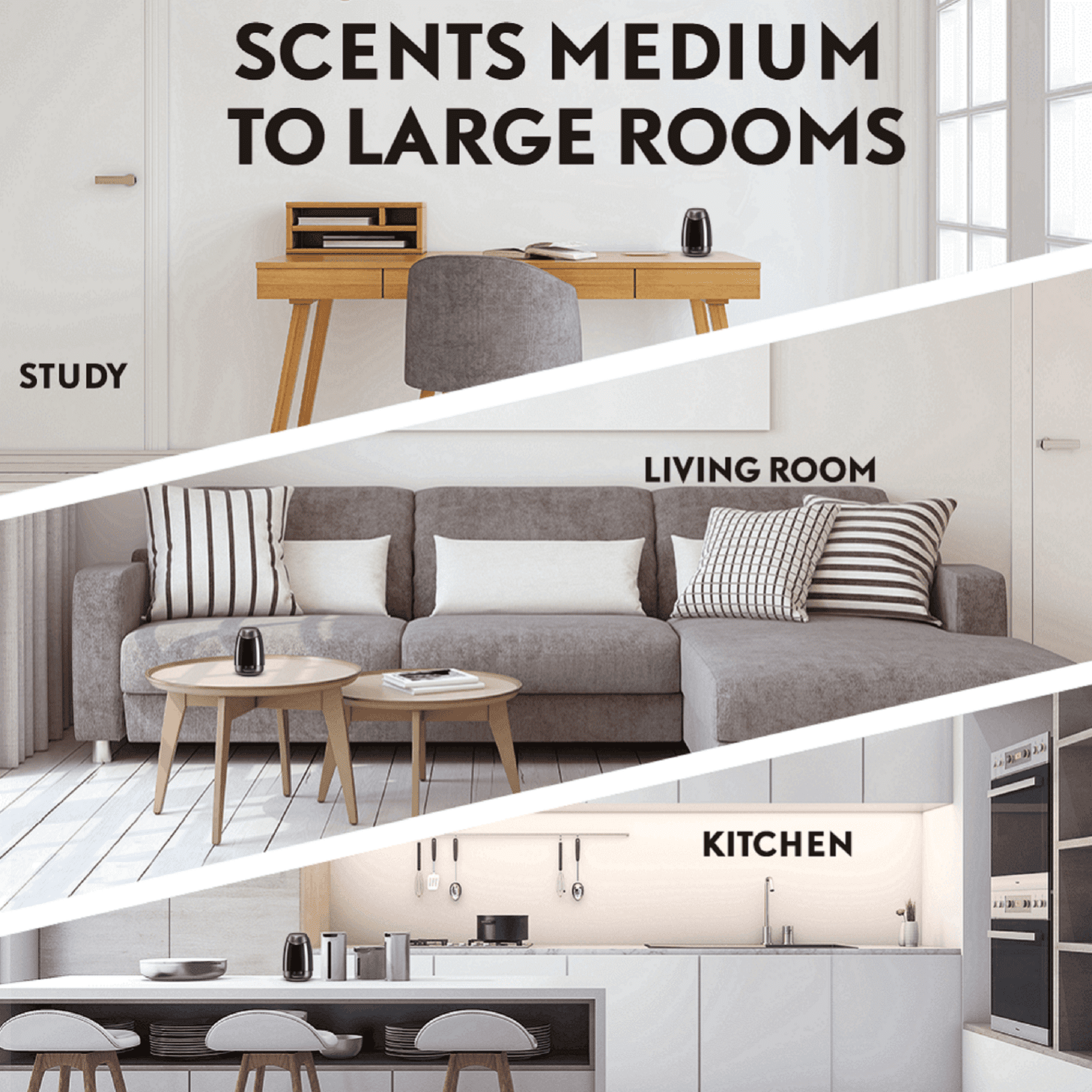 - Transforms fragrance infused with natural essential oils into a gentle mist