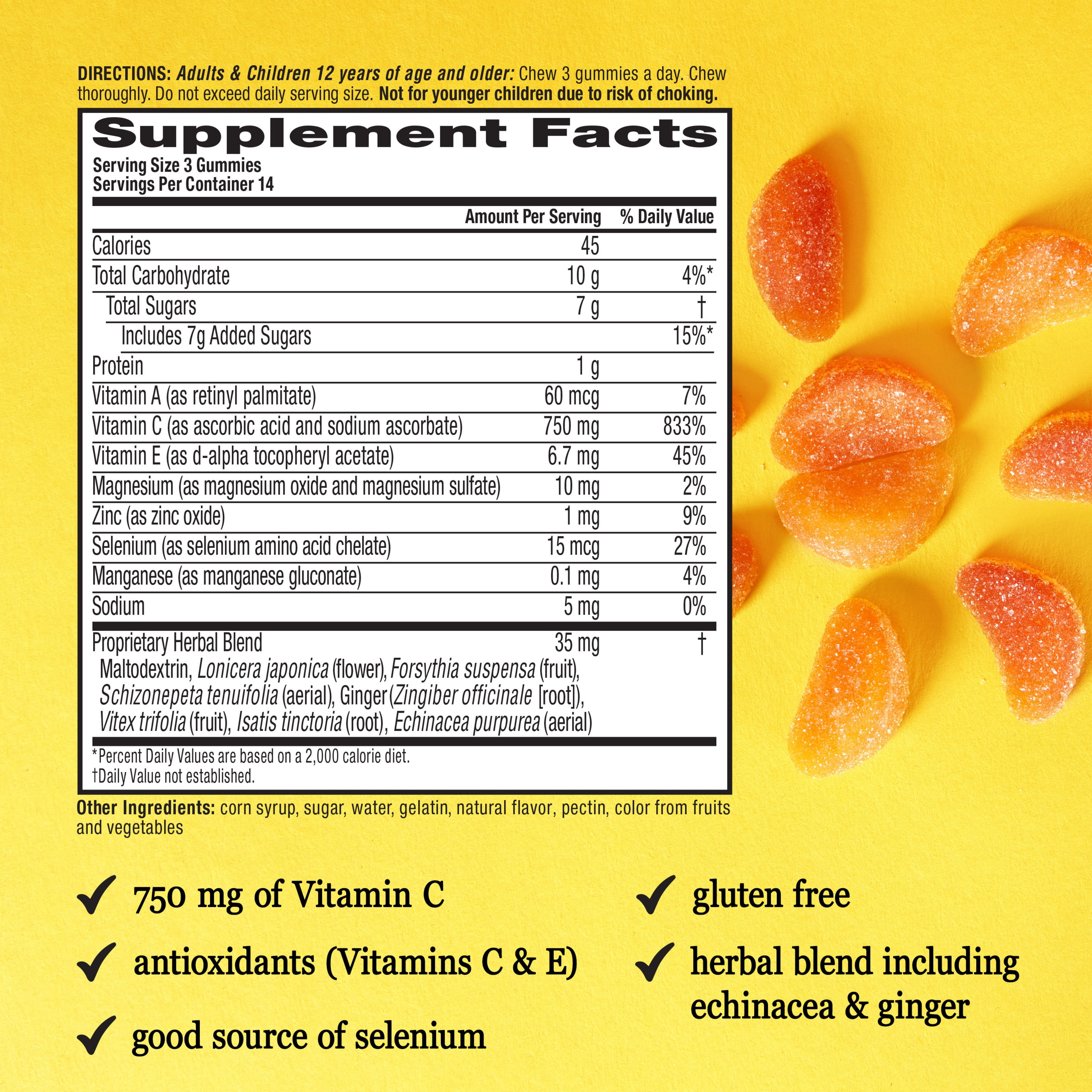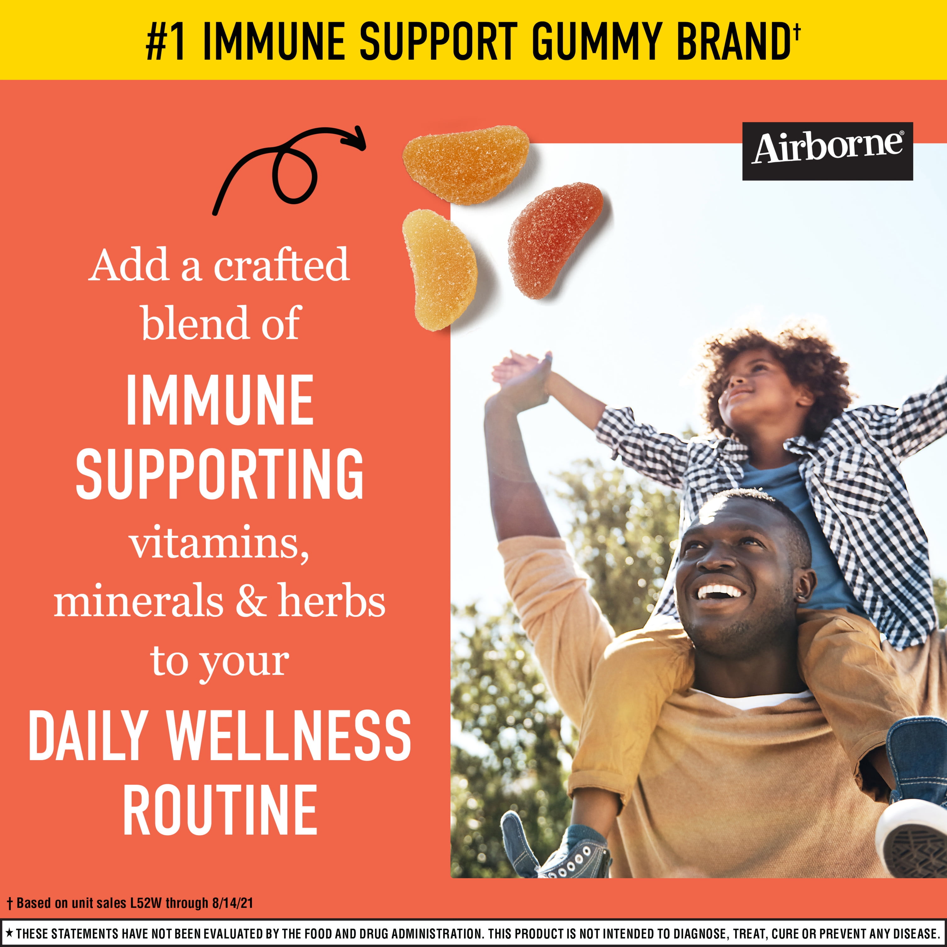 Airborne Original Gummies provides immune support in a great-tasting and easy-to-take form. Each serving (3) gummies delivers 750 mg of Vitamin C and is high in antioxidants (Vitamins C & E), and is an excellent source of Selenium. Also contains a proprietary herbal blend with Echinacea & Ginger. Airborne Original Gummies help support your immune system.*Airborne is the #1 Immune Support Gummy, Effervescent & Chewable Brand.¹*These Statements have not been evaluated by the Food and Drug Administration. This product is not intended to diagnose, treat, cure or prevent any disease.¹Based on unit sales L52W through 4/3/2021