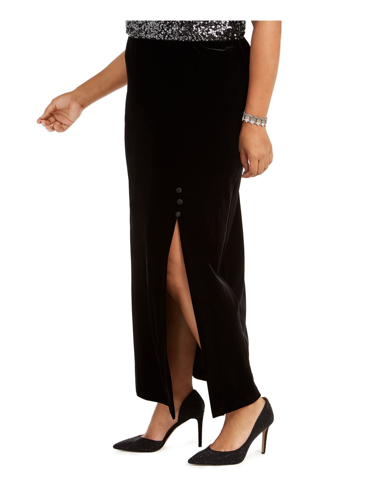 ALEX EVENINGS Womens Black Slitted Maxi Shift Skirt Plus Size: 3X