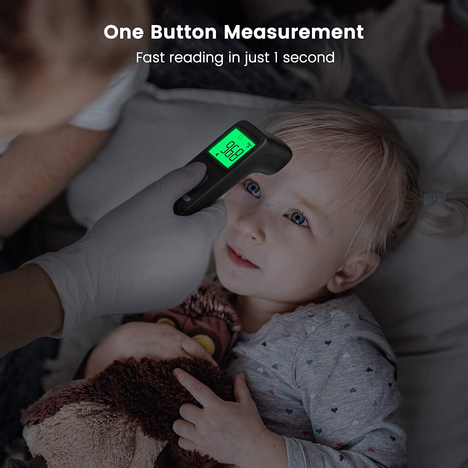 - One Button Measurement: This medical thermometer only one button operation, with Large LCD display, clear readings can be obtained during the day and at night. This head thermometer gun is suitable for indoor and outdoor use.