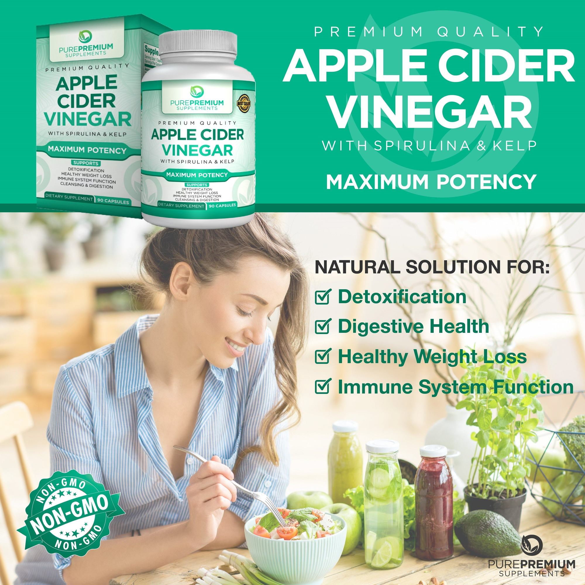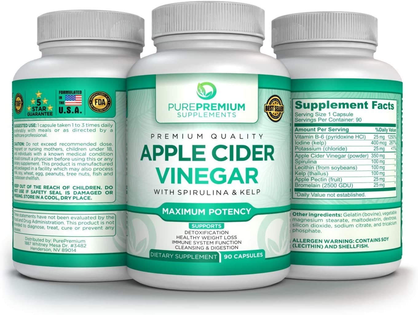 Apple Cider Vinegar Capsules by PurePremium Supplements – Maximum Potency – 90 capsules.
