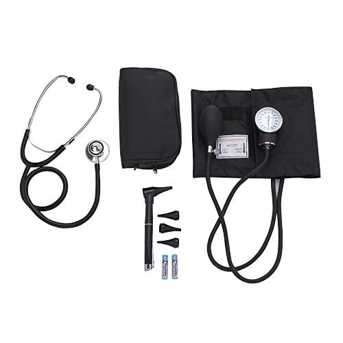 Start off with the best selection of starter kits for nurses, medical students, home health aides, physical therapists, and emergency responders. All of our kits are stocked with essential tools and supplies necessary to perform countless duties for examination. The kit includes: Classic Series Adult Blood Pressure Kit, Stethoscope, Mini LED Diagnostic Otoscope. Handy, portable and easy to store package includes elegant and durable bag that will hold the entire kit. This makes carrying the kit wherever you go easy to perform your job. Whether you’re a medical practitioner or just someone who’s in constant need of a handy blood pressure monitoring kit, our kit will accurately read out your blood pressure 100% of the time. Primacare classic series adult blood pressure kit makes taking patient’s blood pressure an easy task as is one of the most frequent tasks preformed throughout a medical career. Actual measurement is essential in classifying the precise degree of hypertension and determining the correct treatment. The product were made to be durable. The Primacare aneroid features a modern design that fits perfectly on the left or right hand. Combined with the easy release deflation valve, the aneroid makes taking accurate blood pressure measurements easy and comfortable for the patient.ASA TECHMED | Nurse Essentials Starter Kit with Handheld Travel Case | 3 Part Kit Includes Adult Aneroid Sphygmomanometer Blood Pressure Monitor, Stethoscope, Mini Diagnostic Otoscope (Black)