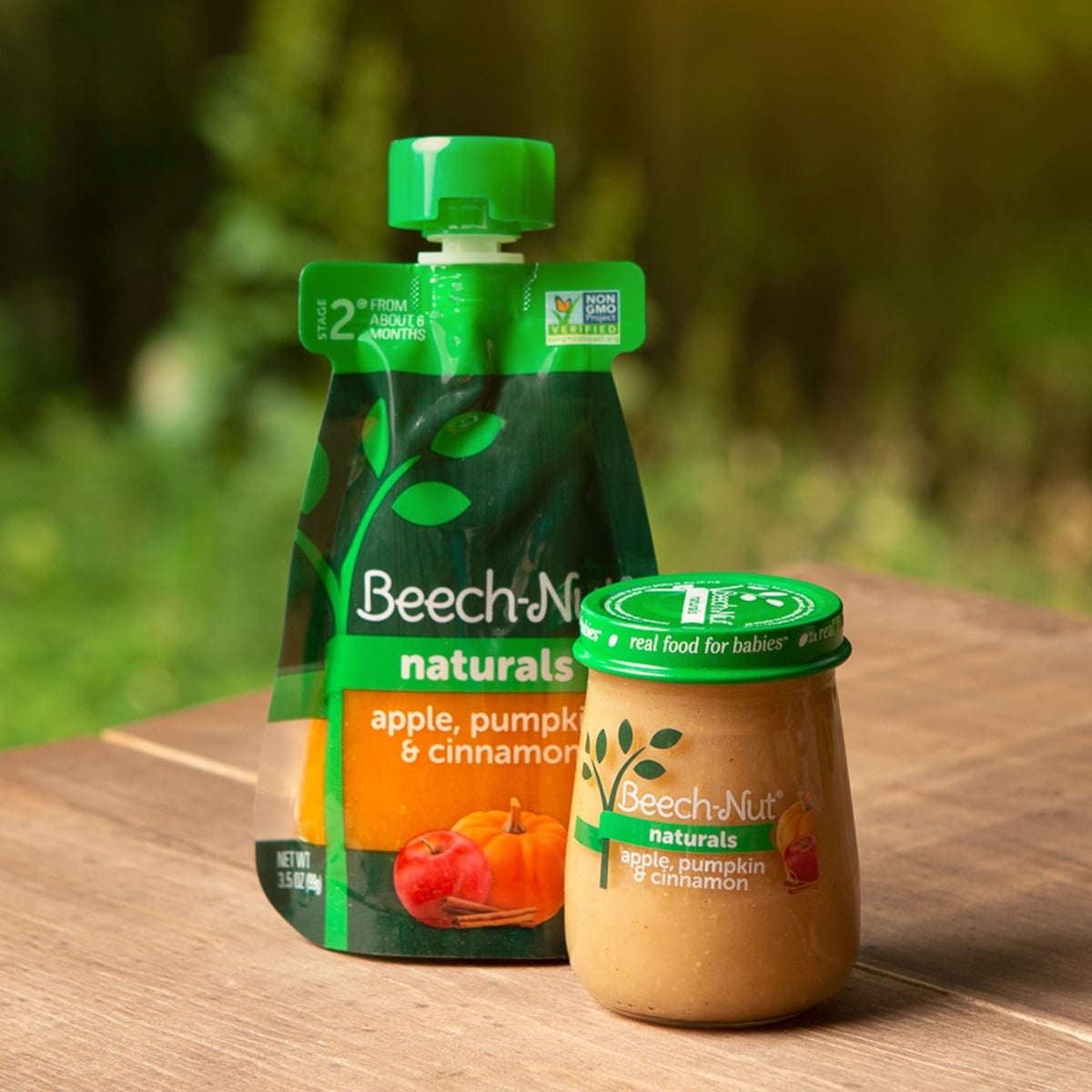 Beech-Nut Naturals baby food is made with real ingredients, gently cooked. For this Stage 2 Beech-Nut Naturals apple, pumpkin & cinnamon baby food we start with Non-GMO apples and pumpkin cooked over indirect heat to preserve color, flavor, and nutrients. We add a dash of cinnamon for a taste of fall all year round. Beech-Nut sources apples locally in upstate New York, from a farm stretching alongside Lake Ontario. Here’s a tip: Try mixing this combo into whole milk yogurt or warm oatmeal to create a hearty breakfast for your toddler. As a Stage 2 puree, Beech-Nut Naturals apple, pumpkin & cinnamon is ideal for babies 6 months and up. All Beech-Nut baby food jars are vacuum-sealed for freshness. This jar can be stored in the refrigerator for up to 3 days after opening.