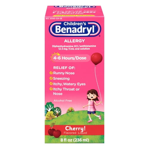 Benadryl Childrens Allergy Reilef Liquid, Cherry – 8 Oz, 2 Pack ; UPC: 312547170550Benadryl Childrens Allergy Reilef Liquid, Cherry – 8 Oz, 2 Pack