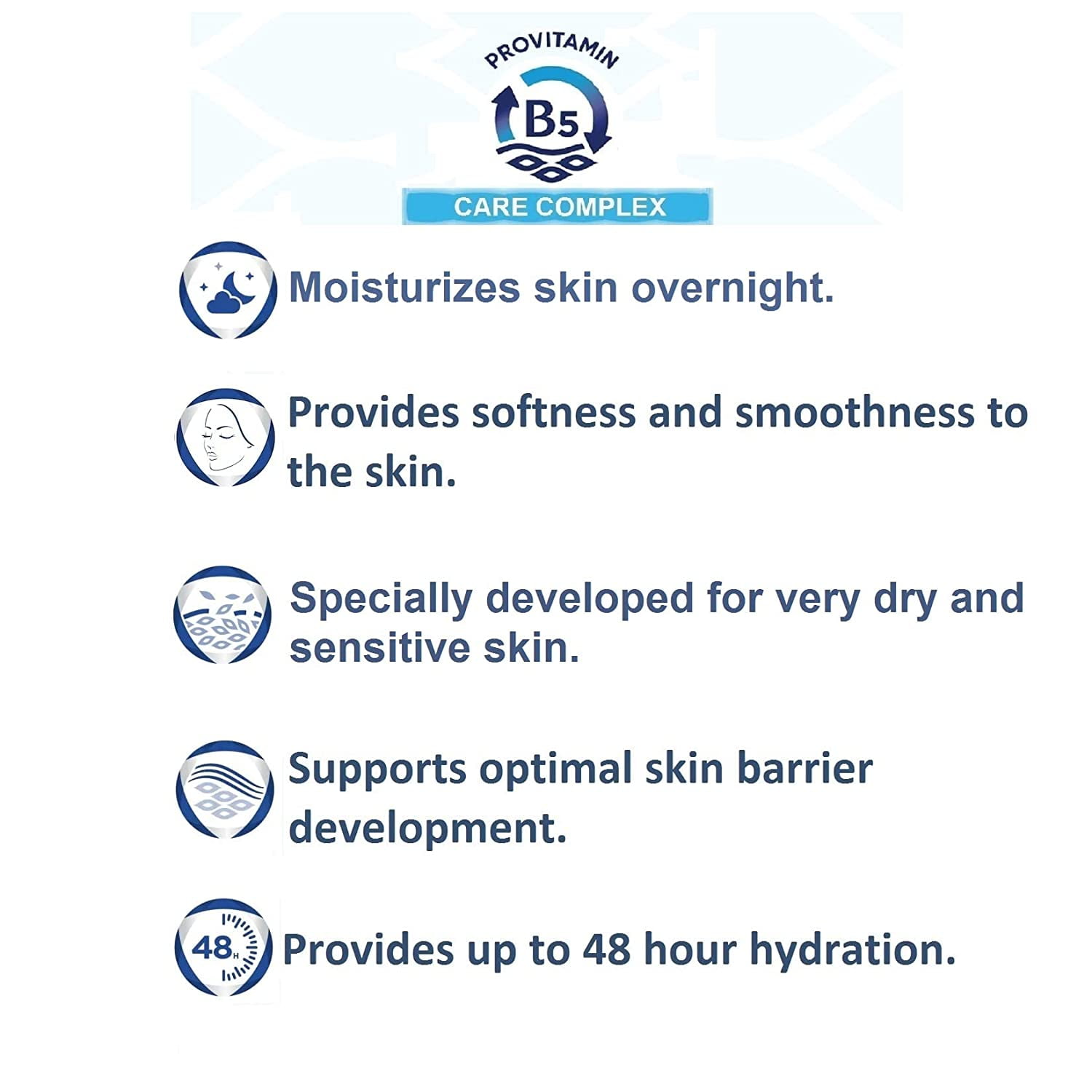 - Provitamin B5 moisturizes and relaxes the skin by penetrating into the deep layers of the skin. Niacinamide helps to improve the lipid barrier by increasing ceramide synthesis, while keeping the skin smooth and moist.