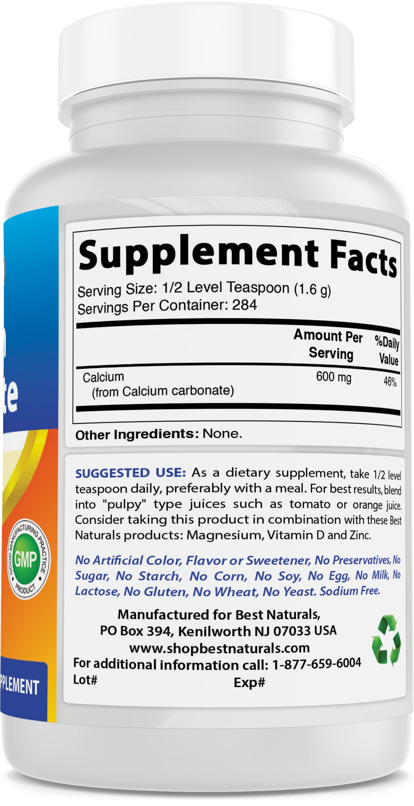 - 100% POTENT & PURE – Best Naturals Calcium Carbonate powder form is 100% pure, and free of fillers and preservatives, much lower in cost, easy to digest, and can be taken in desired potencies. Powdered vitamins and minerals are truly the best way to take supplements.