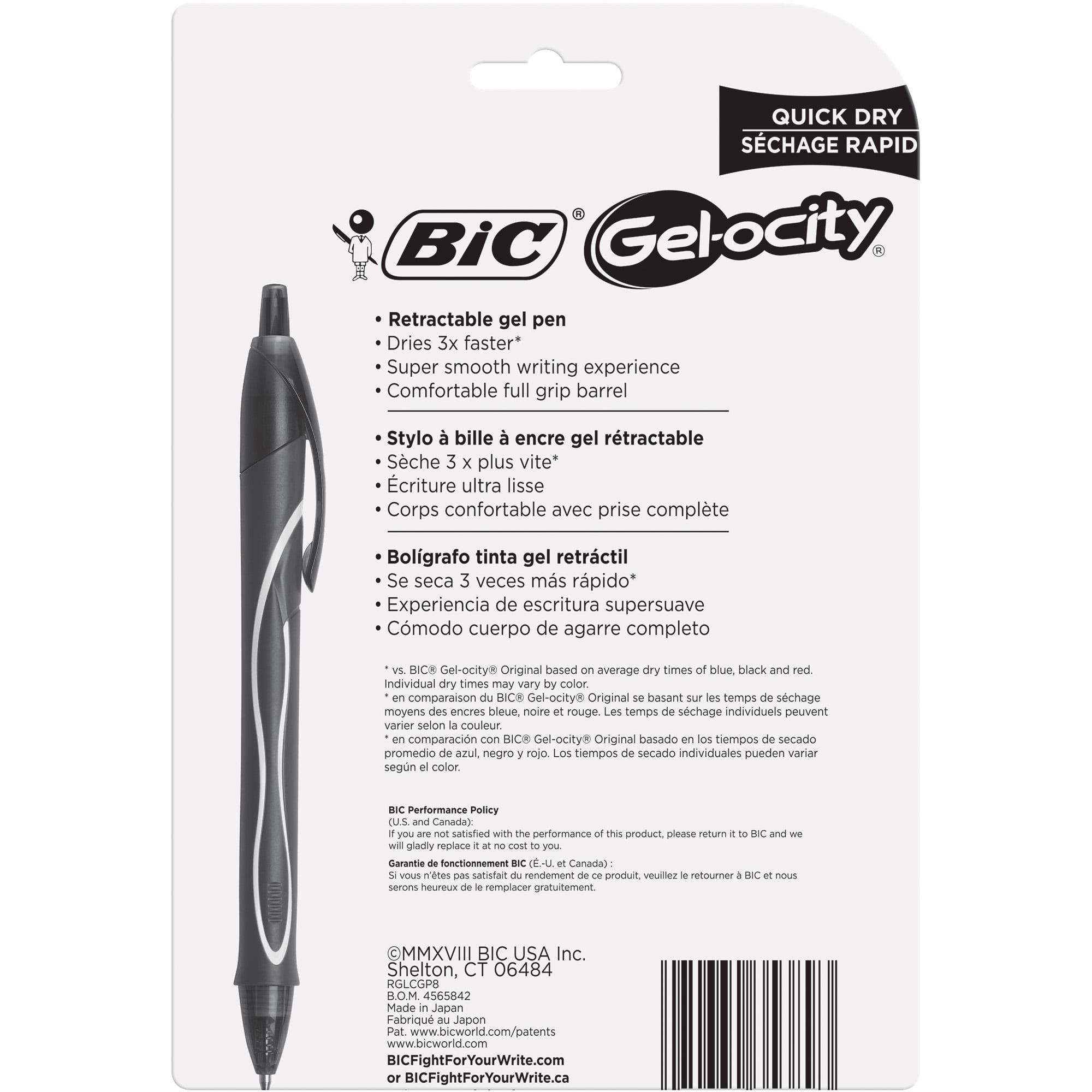 Enjoy a supersmooth writing experience with BIC Gelocity Quick Dry Retractable Gel Pens. Ideal for notetaking, journaling, and a variety of other writing tasks, these pens feature fastdrying inks to help minimize smears*. The fullgrip barrel offers comfort as you write, and the vivid black ink color stands out on the page, helping you get your message across with flair! With their convenient retractable design and vibrant ink, these black gel pens are perfect for everyday use.