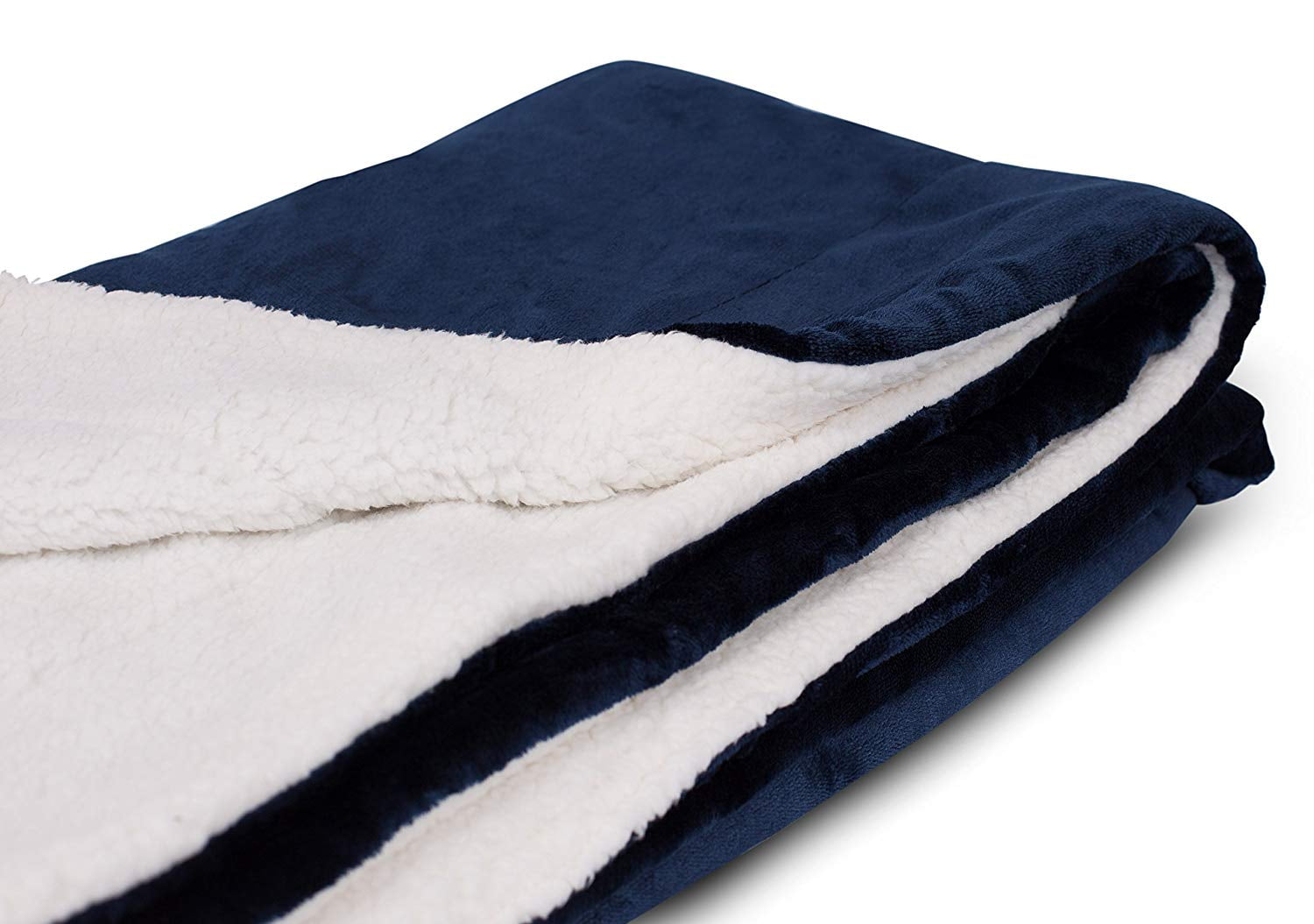 BirdRock Home Plush Reversible Sherpa Throw Blanket – Navy – 50 x 60′