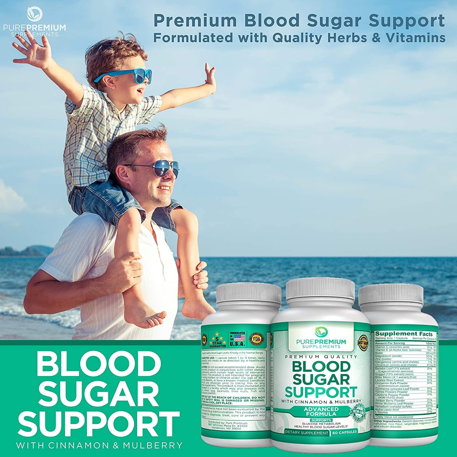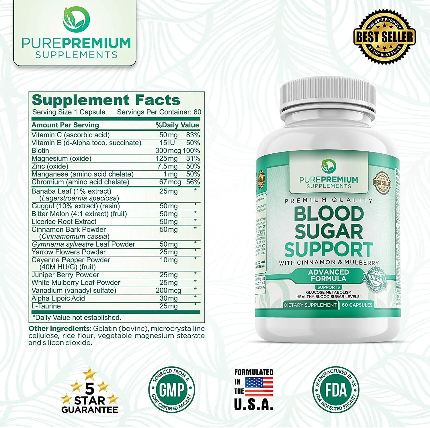 Blood Sugar Support by PurePremium Supplements – Support Glucose Metabolism – Advanced Formula – Non-GMO – 60 Capsules