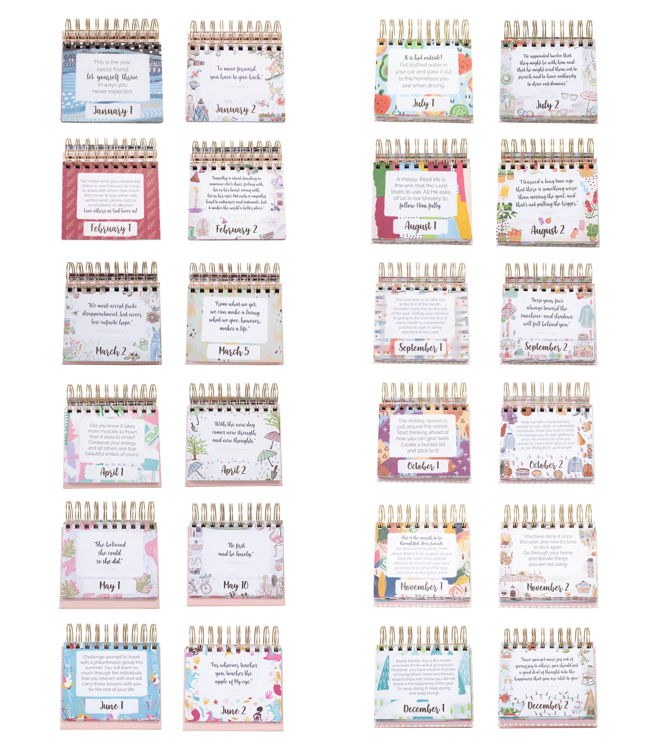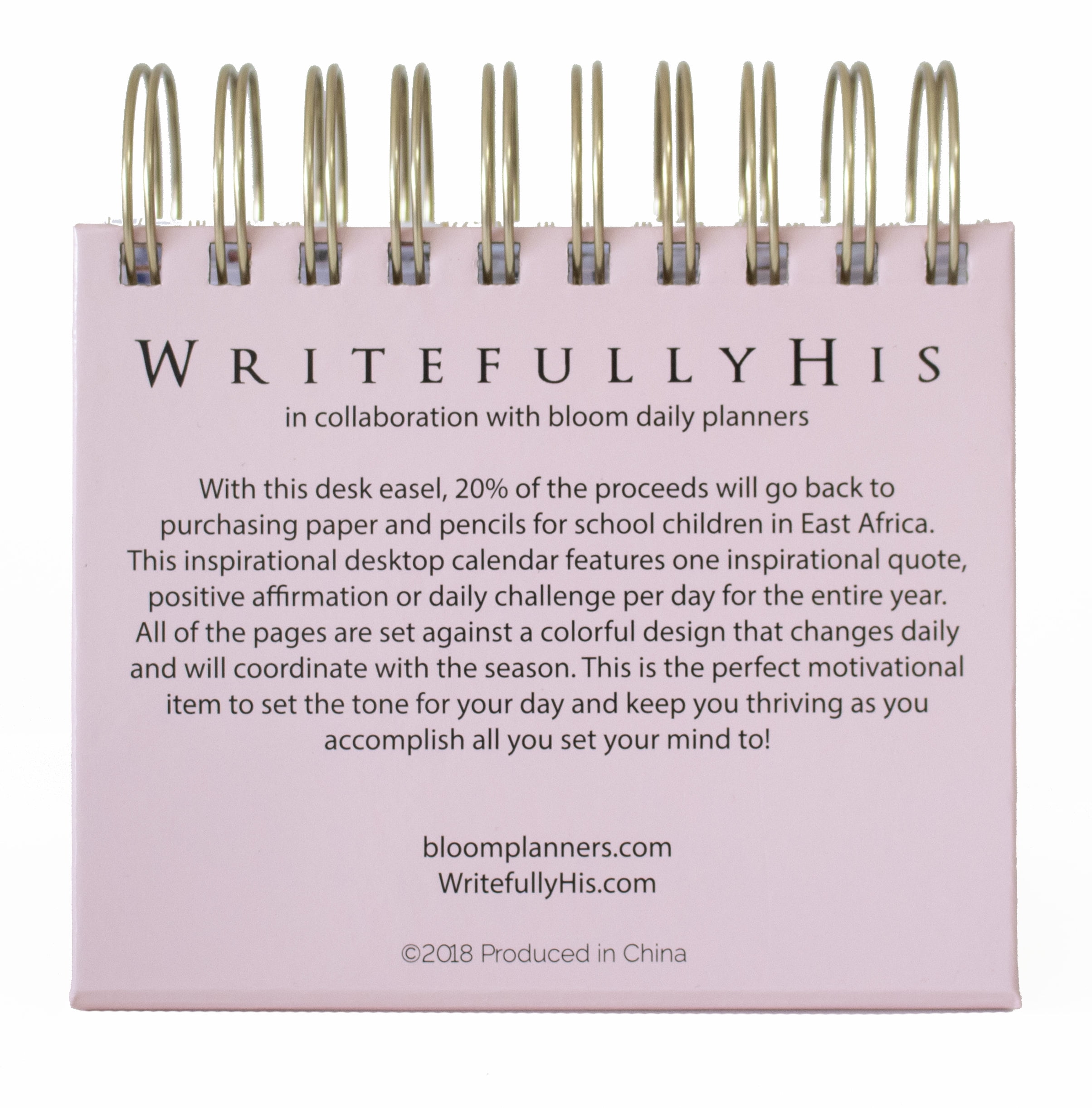 We are proud to announce the new design of our Perpetual Inspirational Desk Calendar! This calendar features 365+ inspirational quotes, positive affirmations, or scriptures, written by Writefully His founder, Mary Grace-Moyd. There are no years printed on pages, so the easel can be reused year after year! Design themes change monthly and are coordinated with the seasons. This is a great gift item and the perfect desk accessory!Inspirational Perpetual Desk Easel, Writefully His by bloom daily planners