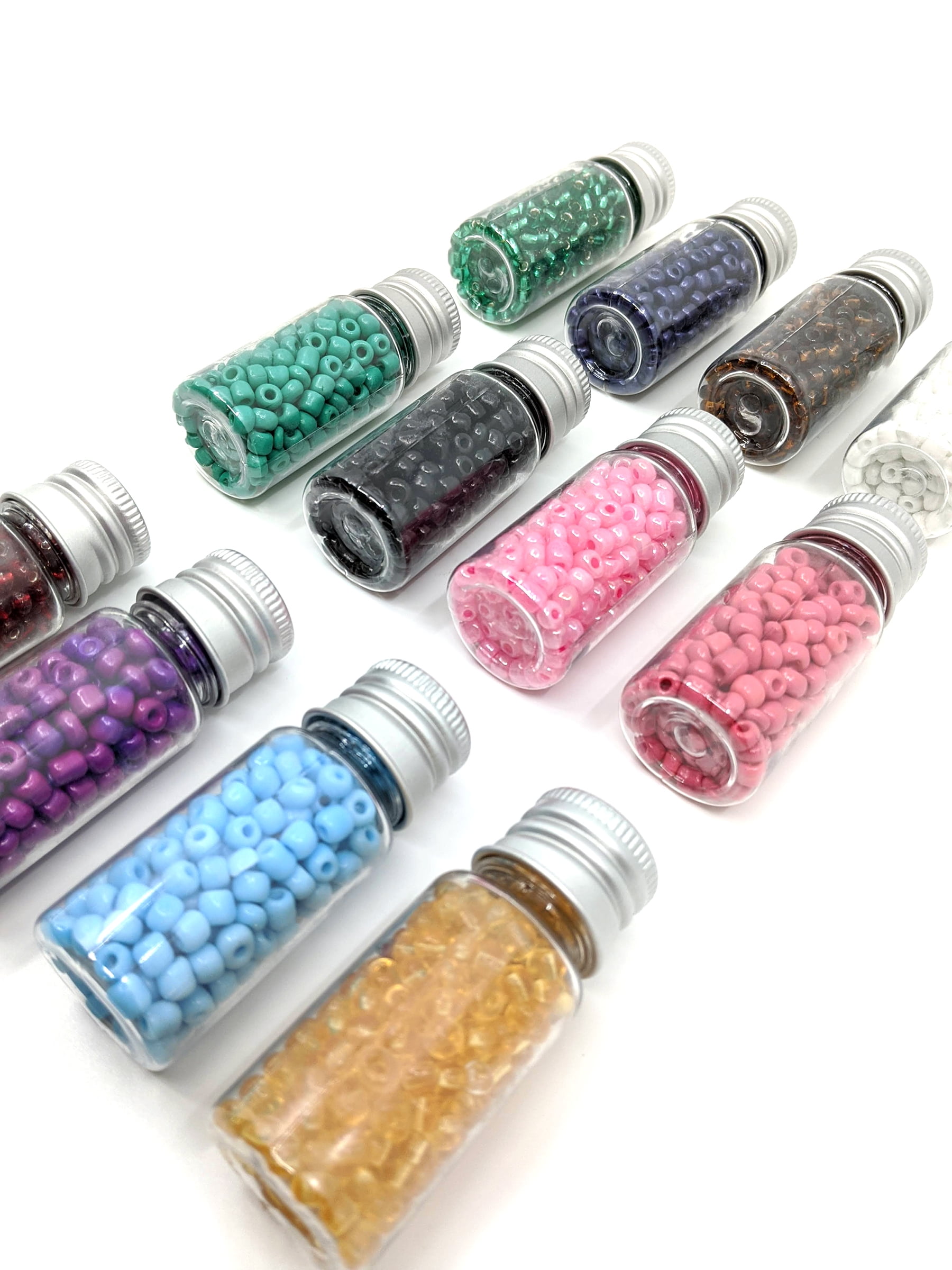 A handy cube of 12 reusable bottles of different seed beads in a bright rainbow of colors. Containers are great for storage. From Blue Moon Beads, a well-known and well-established brand with a long standing reputation of excellent quality jewelry-making supplies, findings, charms, pendants, tools and more, this item is only available at Walmart.