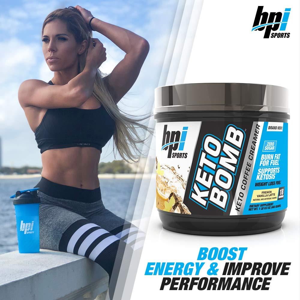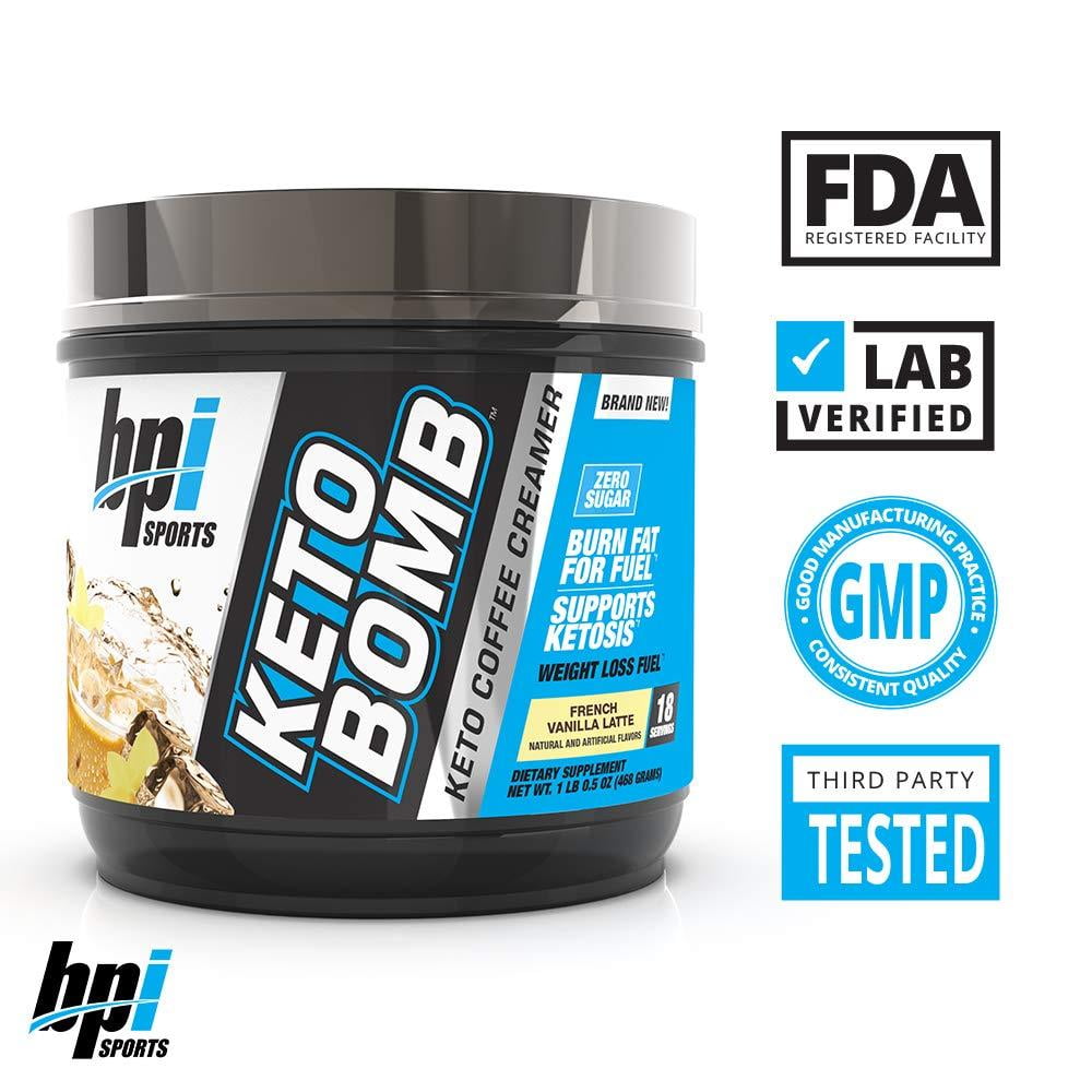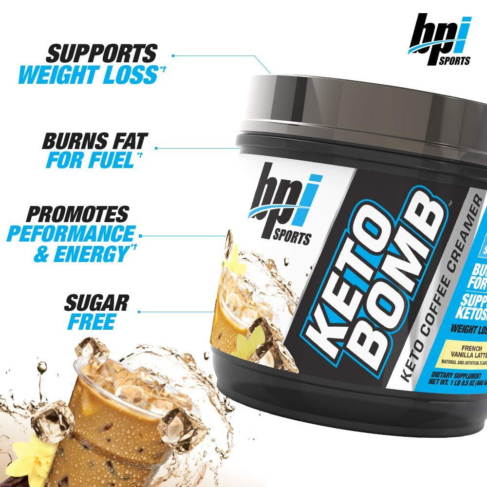 BPI Sports Keto Bomb – Ketogenic Coffee Creamer – Supports Weight Loss, Energy, Hydration, Performance – Contains MCTs & Electrolytes – Zero Sugar – French Vanilla Latte – 18 Servings – 16.5 oz