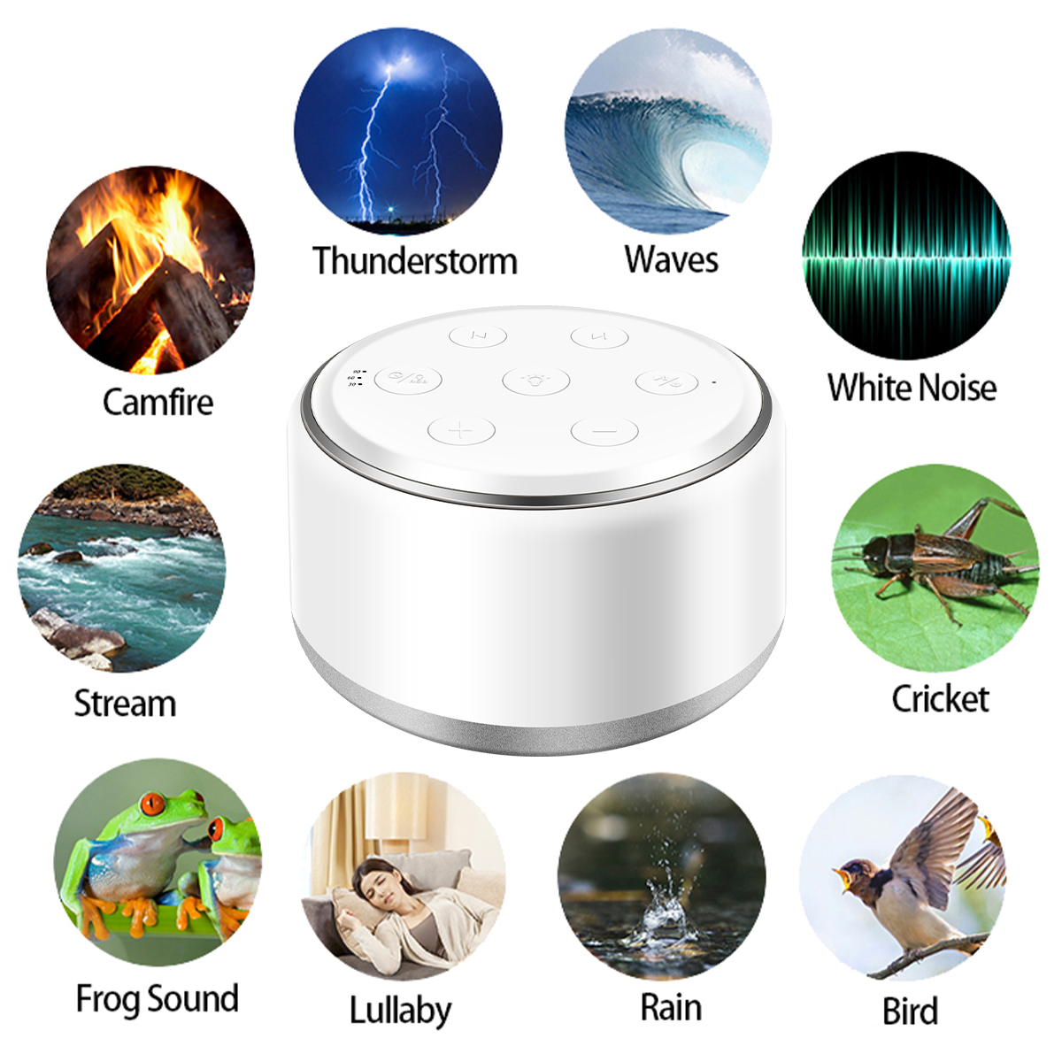 2. Our sleep sounders include white noise, brown noise, pink noise, rain, ocean, wind, nature, and baby lullabies. It can also use as a travel stereo.