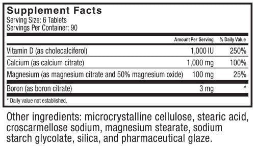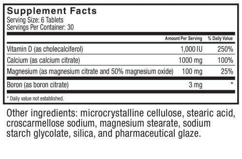Daily Dosage= 6 tablets (to provide 1200 mg of calcium citrate)