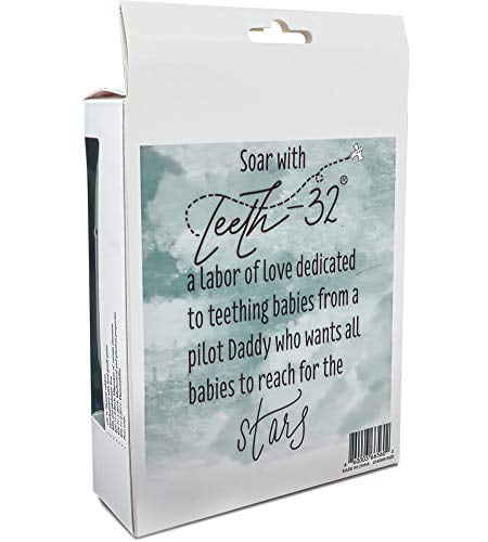 Teeth-32 is a labor of love dedicated to little ones on their path to soar through life. Our toy is dedicated to teething babies from a pilot Daddy who wants all babies to reach for the stars! Chewy, the Teeth-32, is your child?s very own trainer airplane! Inspired by a military instructor pilot and daddy, Teeth-32 wants to embark on an adventure with your little one as they grow all 32 of their teeth! Each Teeth-32 is made from 100% natural Havea rubber and is hypoallergenic. They are hand painted with non-toxic, food grade natural paints and easy to clean. The varying textures mimic real airplane parts and allow the baby to grasp and sooth their gums. Each wingtip is enlarged to imitate wingtip tanks on airplanes such as the T-33 Shooting Star, while the raised bumps on the wing act as vortex generators used to straighten the airflow over the wing on airplanes such as the T-45C Goshawk. The raised intakes above the wing give added texture while the nose and tail are sure to be your child?s favorite!Chewy, The Teeth-32 Airplane Teething Toy 100% Natural Havea Rubber
