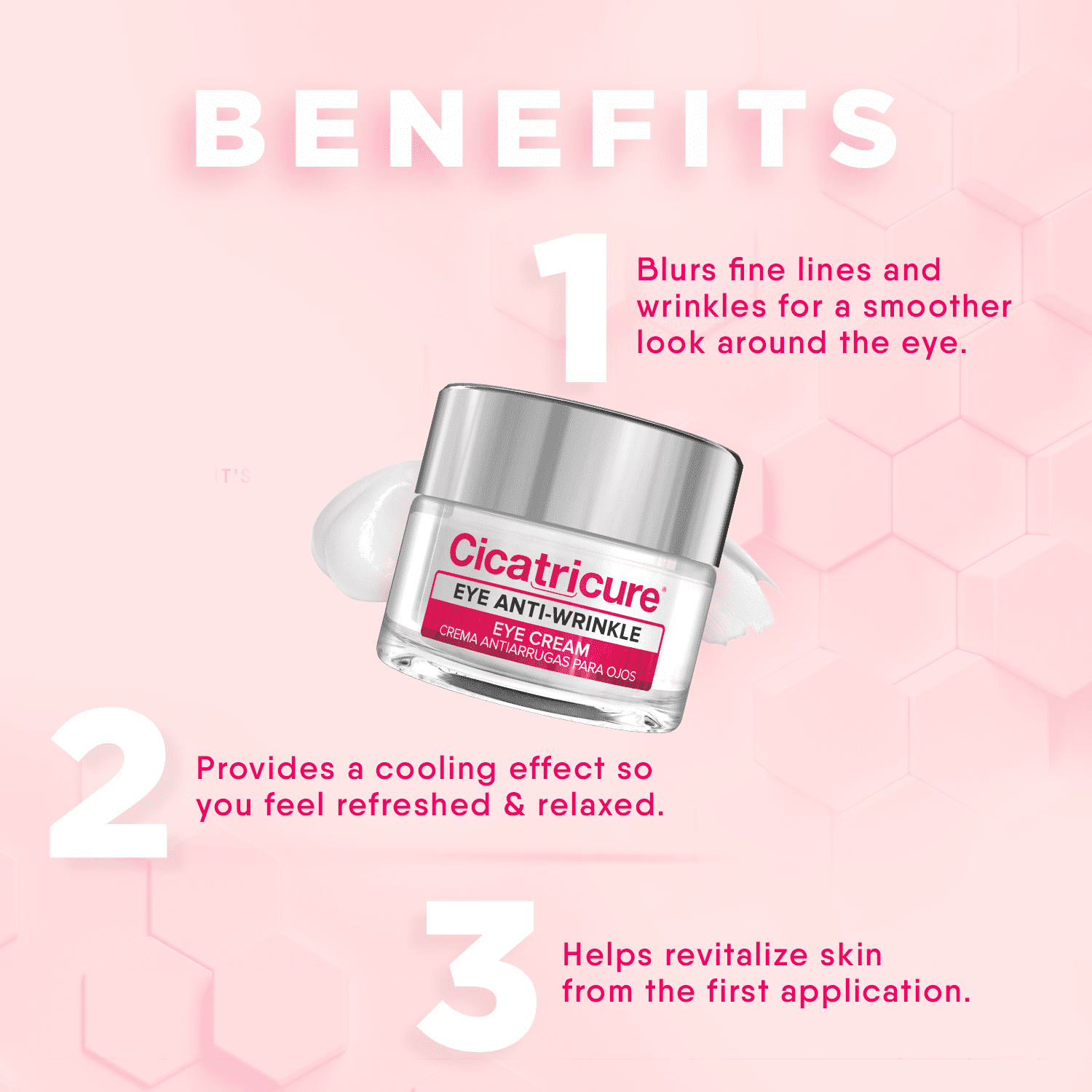 Moisturize the delicate eye and lip area with Cicatricure Anti-Wrinkle Eye Cream. Cicatricure’s facial cream for wrinkles combines the power of peptides with gold, calcium, and silicon. This Cicatricure Anti-Wrinkle Eye Cream works as a skin filler to reduce the appearance of dark circles, eye bags, periocular wrinkles (crow’s feet). Dermatologist tested, this Cicatricure cream is designed to give a youthful appearance. Wrinkles and fine lines appear diminished for younger-looking, smooth skin that is rested and rejuvenated.