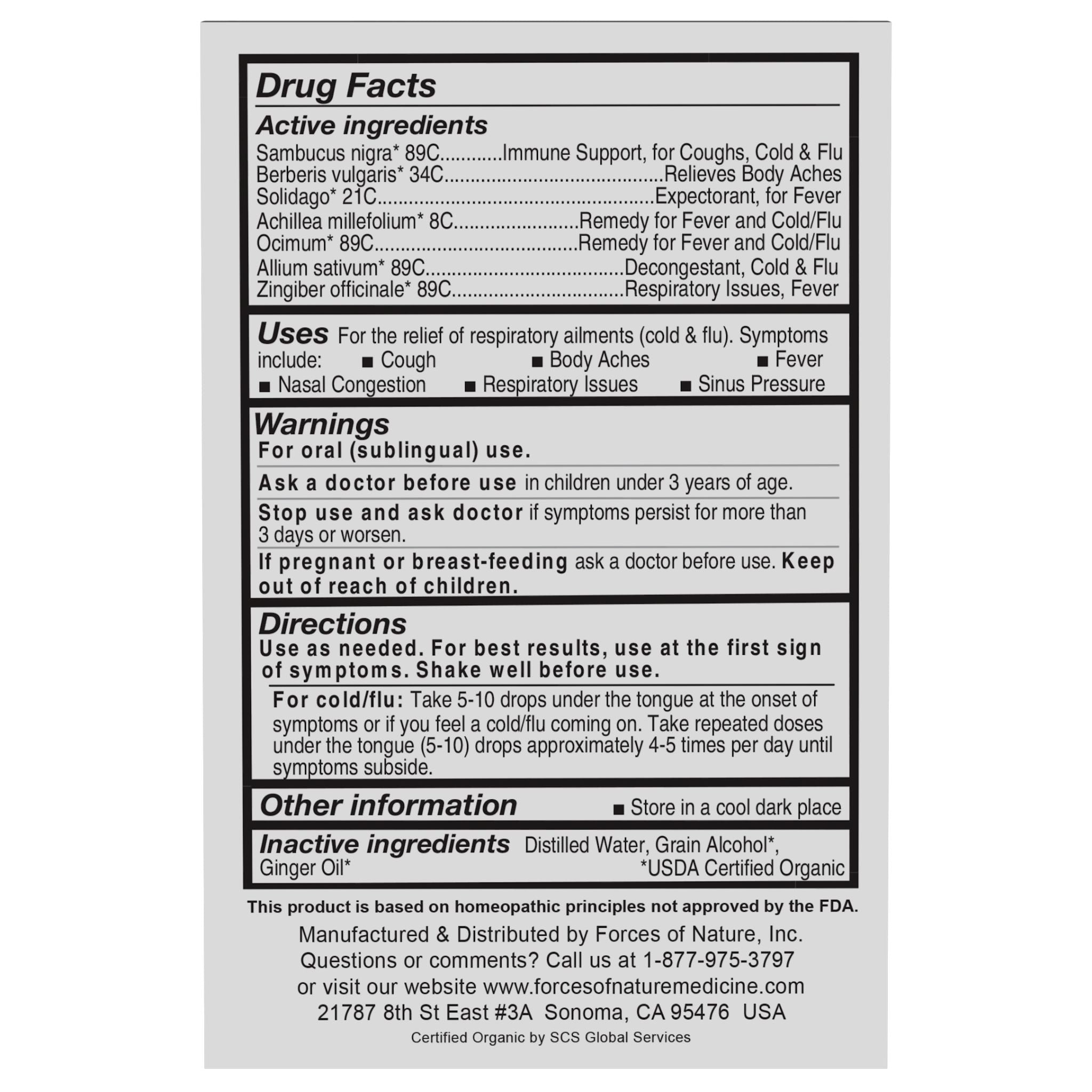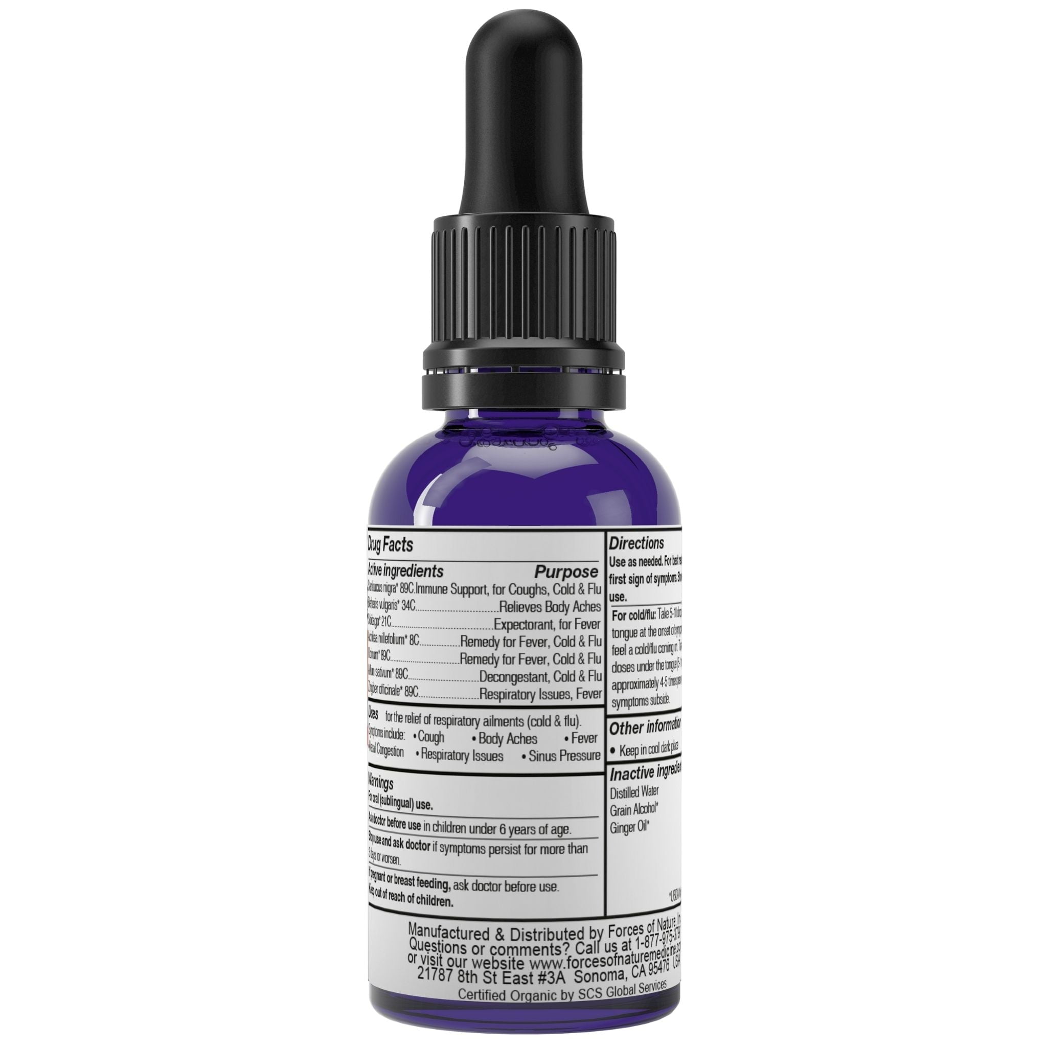 Our natural cold and flu medicine features our one of a kind multi action approach for wellbeing. This includes Elderberry (Sambucus nigra) for sinus congestion, Garlic (Allium sativum) for immune function, Barberry (Berberis vulgaris) for malaise, White yarrow (Achillea millefolium) for fever, Fenugreek (Trigonella foenum-graecum) for inflammation, Goldenrod (Solidago) for immune function, and Ginger (Zingiber officinale) for overall immune support. This combination of both whole herbs and homeopathic dosages provides Maximum Strength and delivers results.