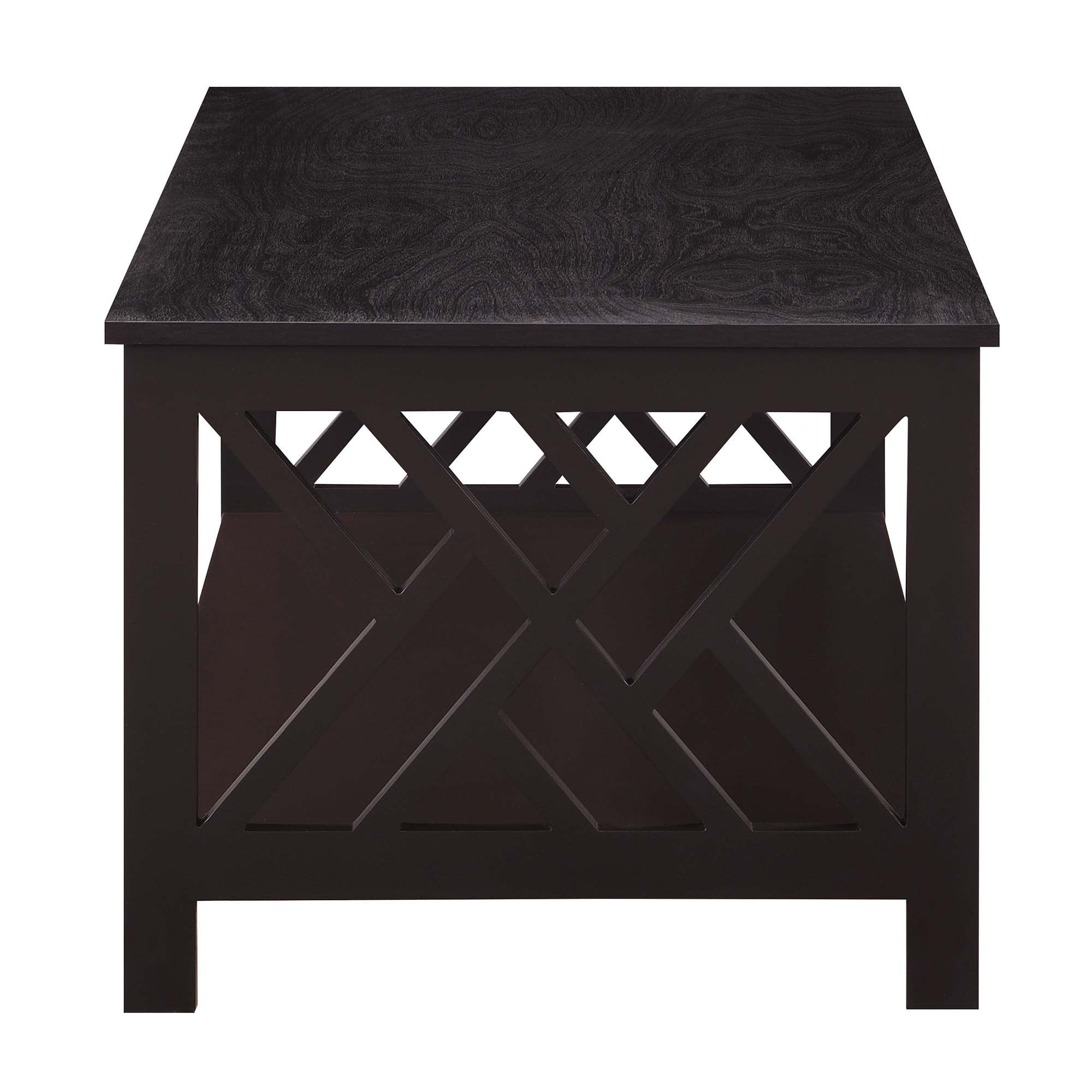 Update your home with this beautifully crafted Titan Coffee Table with Shelf by Convenience Concepts. This simple yet eye-catching coffee table showcases a unique design with its geometric side panels. The large spacious tabletop and the open-concept bottom shelf provide the perfect space to display decor and store entertainment essentials. Crafted from MDF and finished with non-lead-based paint, this transitional table is built to last. Add coordinating pieces from the Titan Collection by Convenience Concepts, each sold separately.