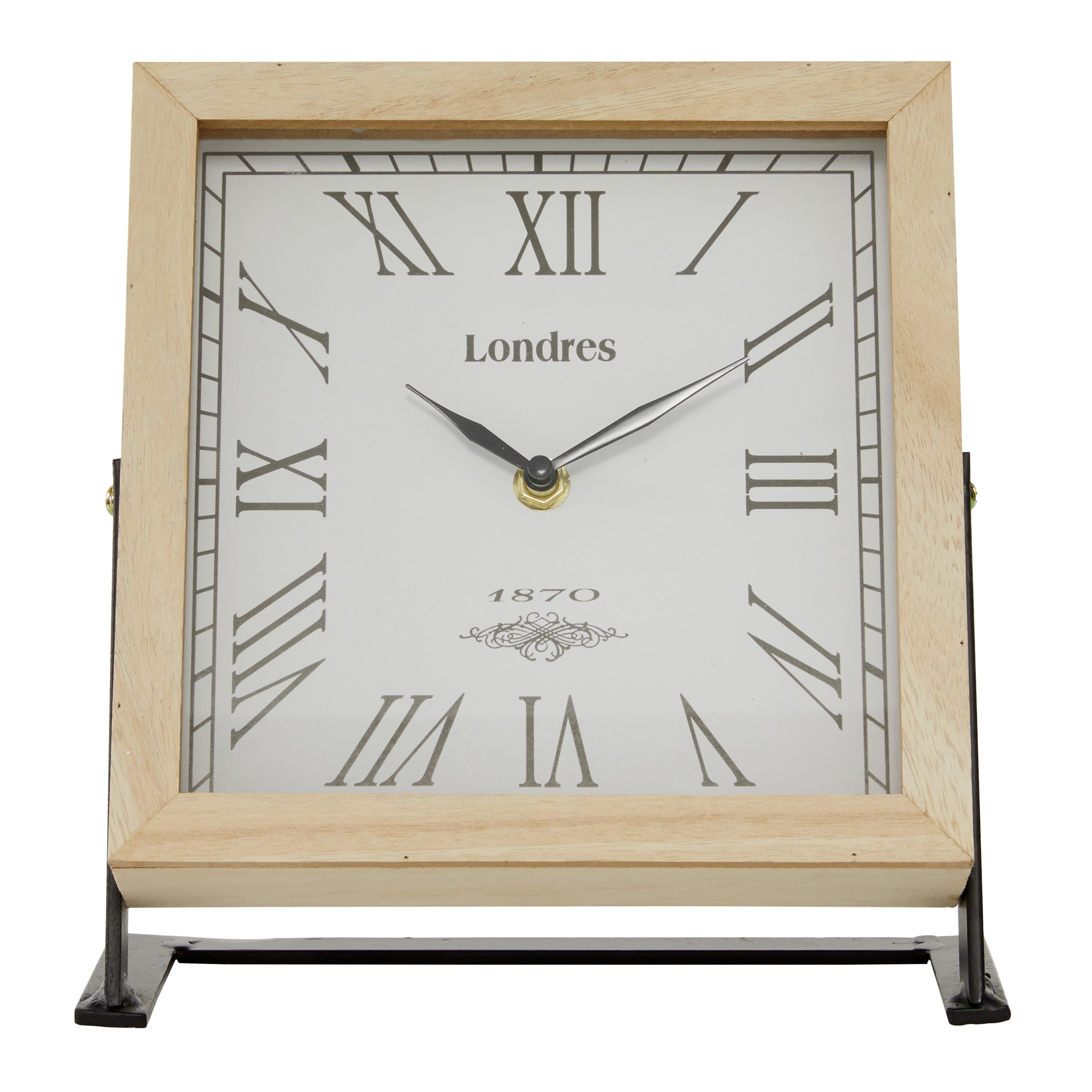 DecMode 9’W, 9’H Wood Brown Analog Farmhouse Tabletop Clock, 1 – Piece
