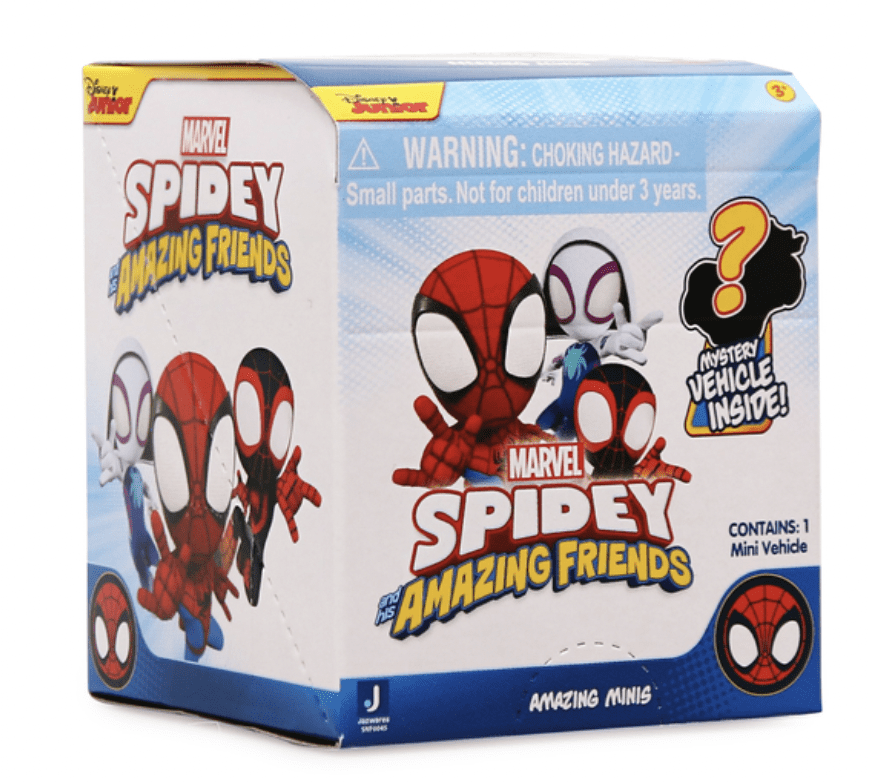 open up a fun surprise with the marvel® spidey and his amazing friends mini vehicle blind bag! which amazing mini will you get??