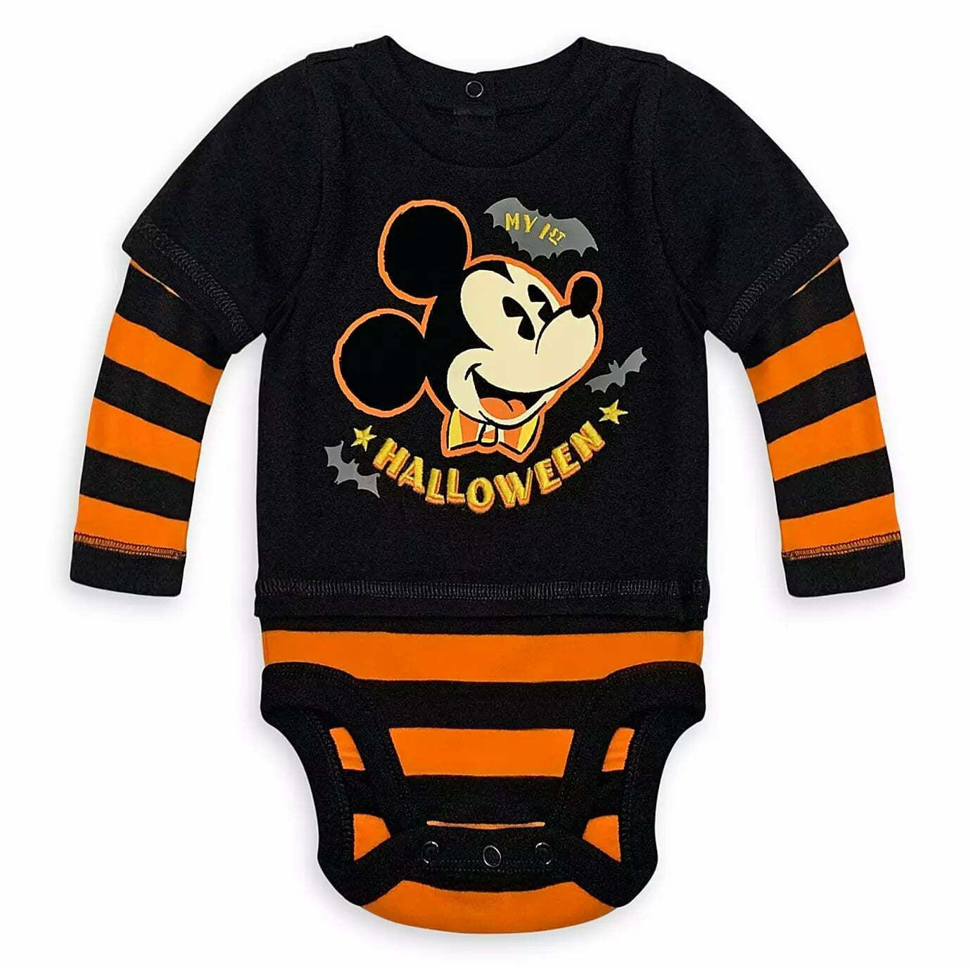 Disney Store Mickey Mouse my 1st Halloween Baby Bodysuit Dress UP Outfit Longsleeve Layered look bodysuit Mickey Mouse art with embroidered outline Embroidered My 1st Halloween greeting Long sleeves with striped print Disney Store Mickey Mouse my 1st Halloween Baby Bodysuit Dress UP Outfit Longsleeve Layered look bodysuit Mickey Mouse art with embroidered outline Embroidered My 1st Halloween greeting Long sleeves with striped print