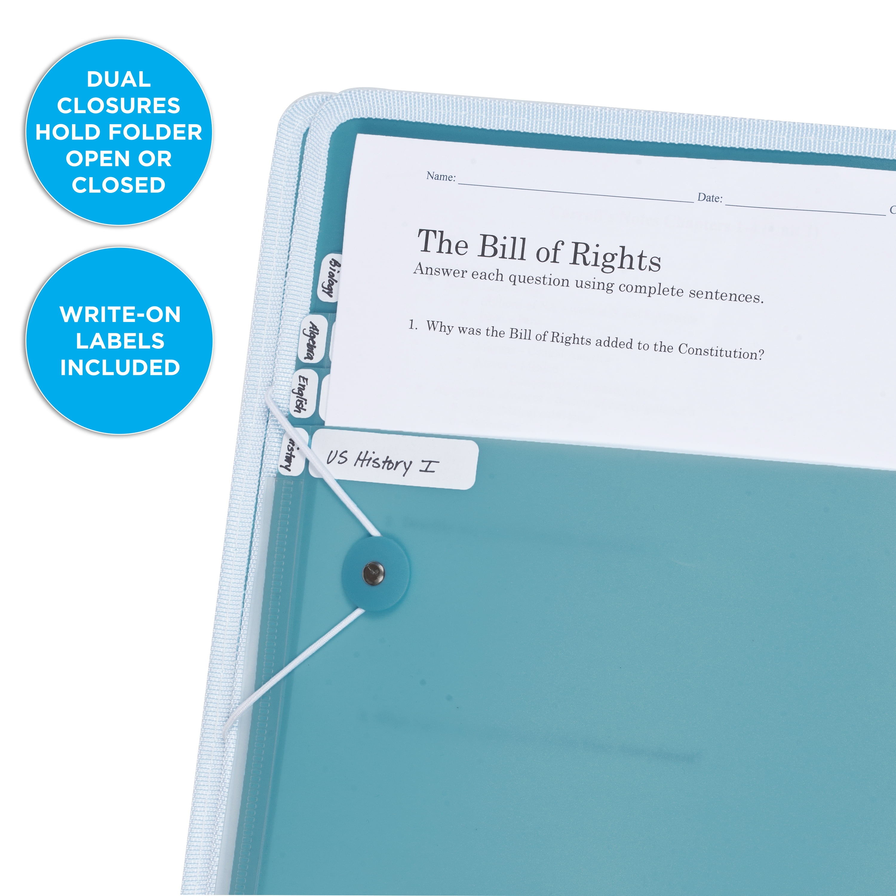 - Each expanding folder comes with blank, white write-on labels for easy tab identification