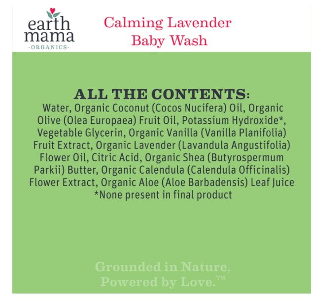 Sometimes you want a bath to clean, sometimes you want a bath to calm, sometimes you want both! Naturally calming, organic Vanilla and Lavender pure essential oils make Calming Lavender Body Wash & Shampoo perfect for a calming bath. Gentle, versatile and made with soothing organic Calendula, Earth Mamas safe and effective castile-based body wash baby shampoo is naturally detergent-free, and perfect for a newborn’s first bath, foamy fun baby bath time, hand washing and head-to-toe family clean. Mild enough for delicate baby skin and hair, safe and effective for EVERY body! Made without synthetic fragrances, Triclosan, phthalates, parabens or harsh sulfates.