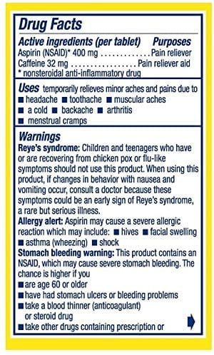 #1 cardiologist recommended aspirin.Pain RelieverGlaxosmthklnActive Ingredients:In Each Tablet: Aspirin 81 mgDo not take more than directed. Adults take 4 to 8 tablets every 4 hours, as needed, with water. Do not exceed 48 tablets in 24 hours. Children under 12: ask a doctor. Store at room temperature. Avoid excess heat and humidity.Inactive Ingredients:Carnauba Wax; D&C Yellow #10; FD&C Yellow #6; Hypromellose; Methacrylic Acid Copolymer; Microcrystalline Cellulose; Polyethylene Glycol; Polysorbate 80; Propylene Glycol; Silicon Dioxide; Starch; Stearic Acid; Talc; Titanium Dioxide; Triethyl CitrateUses:For the temporary relief of minor aches and pains due to: headache, muscle pain, toothache, menstrual pain, colds, minor pain of arthritis; or as recommended by your doctor. #1 cardiologist recommended aspirin.Reye’s syndrome: Children and teenagers should not use this drug for chicken pox or flu symptoms before a doctor is asked about Reye’s Syndrome, a rare but serious illness reported to be associated with aspirin. Allergy alert: Aspirin may cause a severe allergic reaction which may include: hives, facial swelling, shock, asthma (wheezing). Alcohol warning: If you consume 3 or more alcoholic drinks every day, ask your doctor whether you should take aspirin or other pain relievers/fever reducers. Aspirin may cause stomach bleeding. Do not use if you have ever had an allergic reaction to any other pain reliever/fever reducer. Ask a doctor before use if you have: ever had an allergic reaction to aspirin; ulcers; bleeding problems; stomach problems that last or come back, such as heartburn, upset stomach or pain; asthma. Ask a doctor or pharmacist before use if you are taking a prescription drug for: diabetes, gout, arthritis, anticoagulation (blood thinning). When using this product do not take more than directed. Stop use and ask a doctor if: pain gets worse or lasts more than 10 days; allergic reaction occurs. Seek medical help right away; ringing in the ears or loss of hearing occurs; redness or swelling is present; new symptoms occur. If pregnant or breast-feeding, ask a health professional before use. It is especially important not to use aspirin during the last 3 months of pregnancy unless definitely directed to do so by a doctor because it may cause problems in the unborn child or complications during delivery. Keep out of reach of children. In case of overdose, get medical help or contact a Poison Control Center right away.Ecotrin 81 mg Low Strength Tablets 45 Tablets