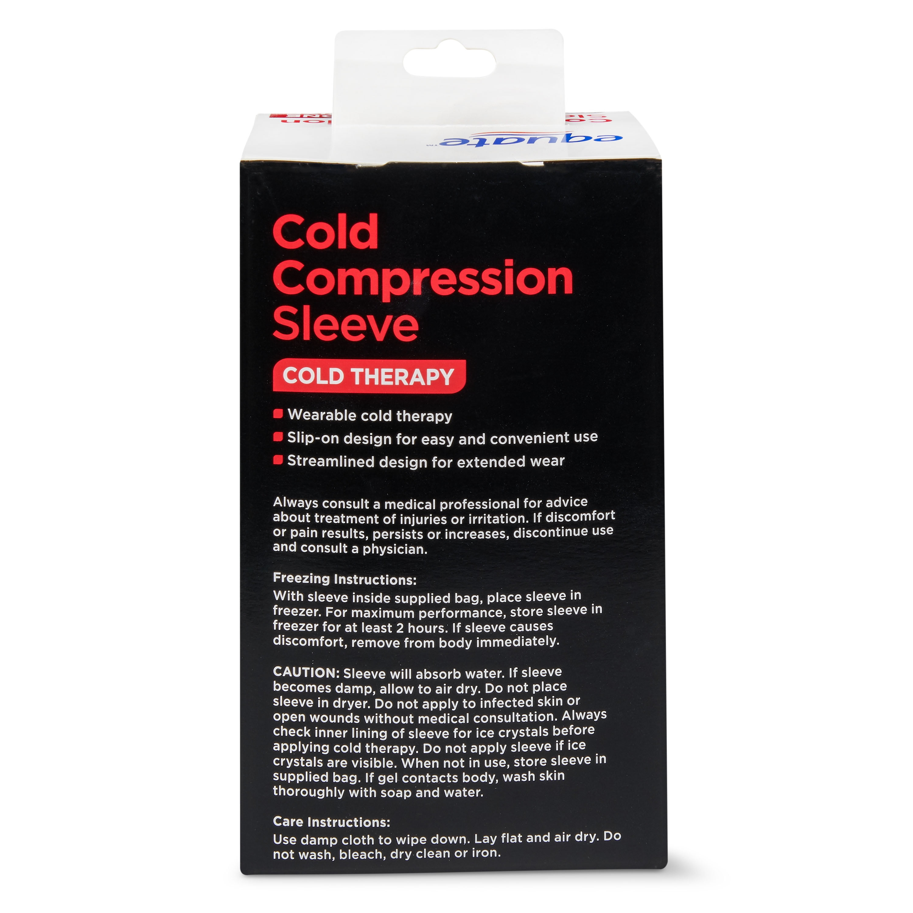 Treat your aching muscles and joints to a soothing cold-compress session with our Equate Cold Therapy Cold Compression Sleeve. Our Equate Cold Compression Sleeve eliminates the need for ice packs and homemade compresses as its slip-on design makes it easy for anyone to use and its wearable cold-therapy use replaces your usual ice pack and towel method to treating aches and pains. The sleeve’s reusable streamlined design allows for extended wear and is intended to reduce swelling while maintaining flexibility and form when cold. Plus, the sleeve is one-size-fits-all to aid everyone in your family and is free of natural rubber latex to prevent common allergic reactions. Sessions of cold therapy compression are easy to achieve when you use our Equate Cold Therapy Cold Compression Sleeve.
