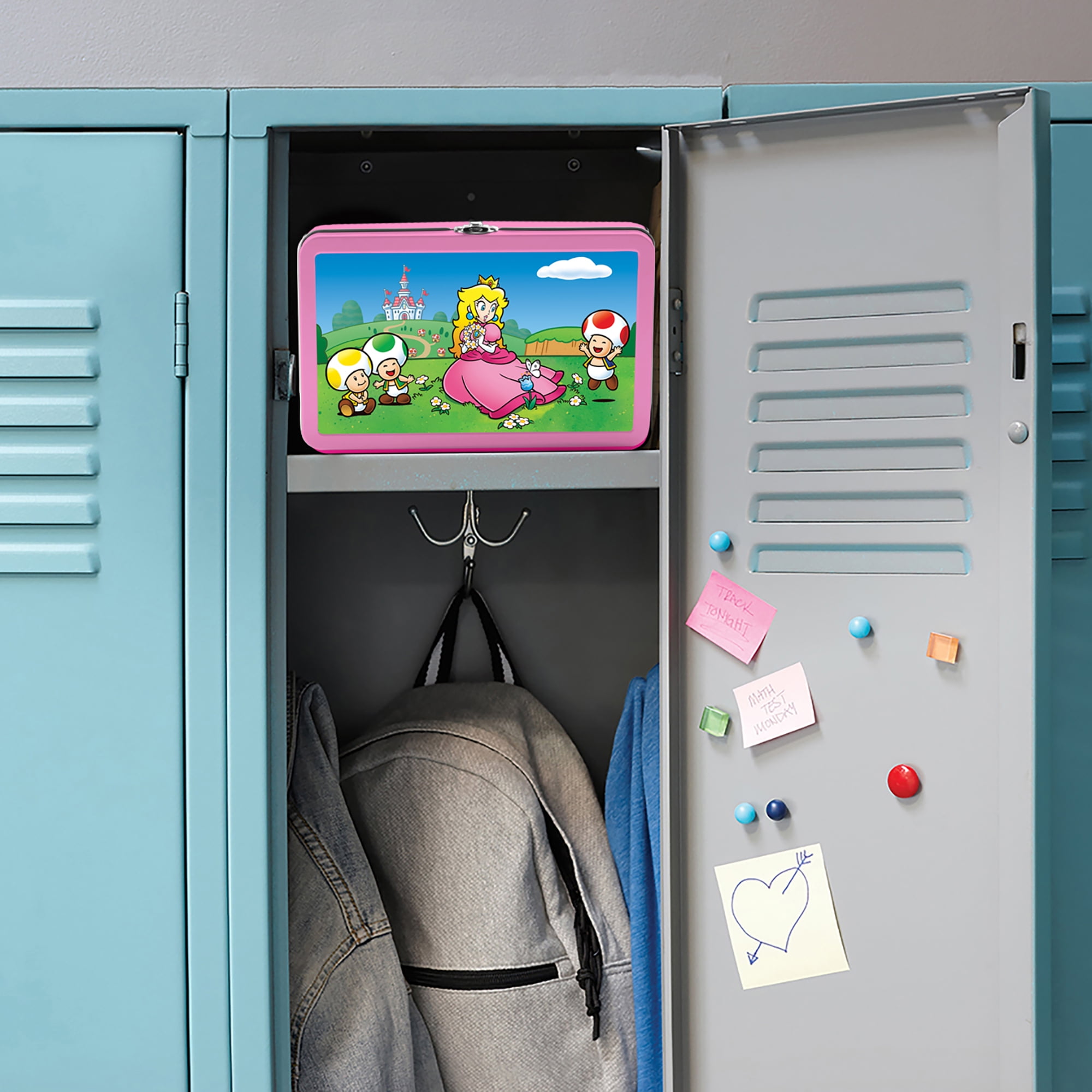 The Find It Tin Pencil Box with our 3D Princess Peach design is a sturdy little catch-all for school supplies and other small items. Its tin construction provides far more durability than plastic and has a convenient snap closure. The dimensions are 8.25” (height) x 5.13” (width) x 2.5” (depth).