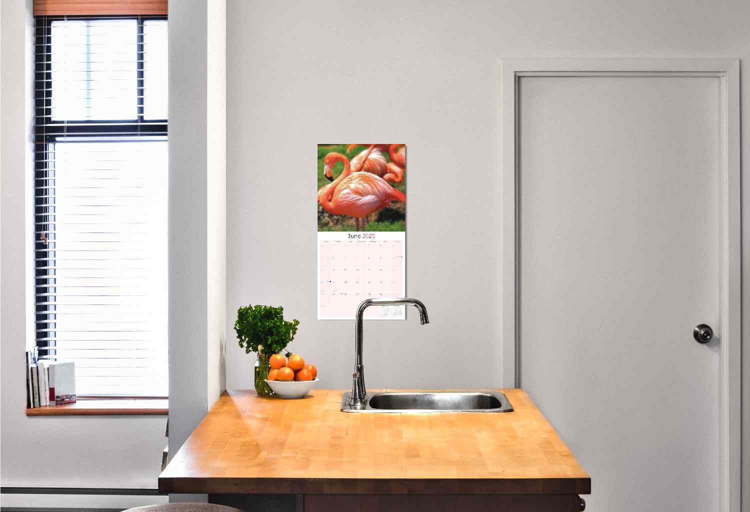 - COVERS 16 MONTHS – Hanging monthly wall calendar from Sept 2022 – Dec 2023. A square calendar of beautiful Flamingos is ideal for creating a comfortable look in home & office. Size Closed: 12 W x 24 H, Size Opened: 12 W x 24 H.