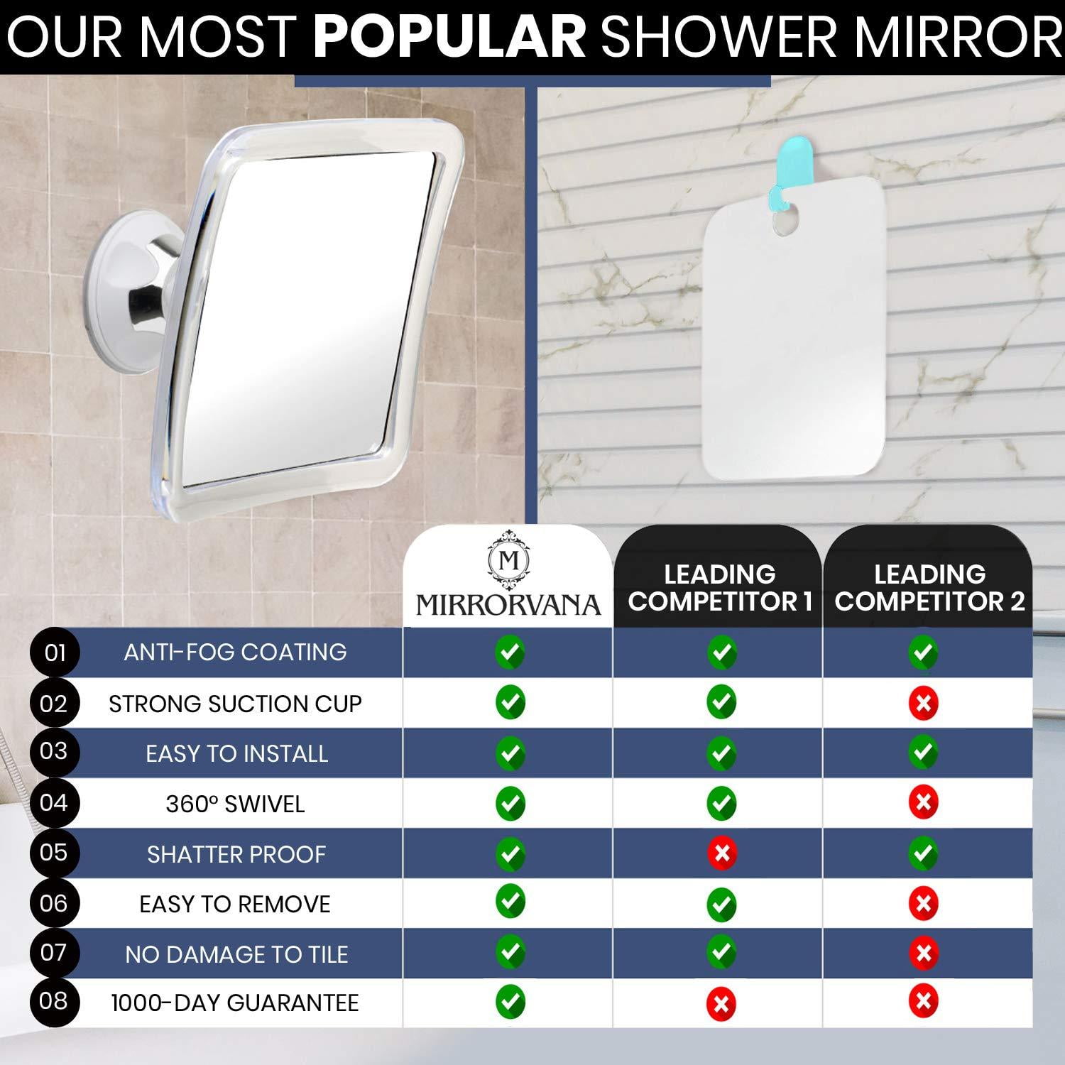 ** IMPORTANT INFORMATION Regarding Your Mirrorvana Fogless Mirror ** 1. TO KEEP THE MIRROR’S ANTIFOG COATING WORKING FOR YOU AS LONG AS POSSIBLE, we recommend installing the mirror far away from your showerhead. If you decide to install the mirror close to a water source against our recommendation, then please keep the mirror face down or facing away to minimize the amount of water it comes into contact with. 2. Preheating the mirror with HOT WATER CAN MAKE ANY MIRROR FOGLESS TEMPORARILY, not just fogless mirrors. However, WE DO NOT RECOMMEND doing this to your Mirrorvana unless the coating has already worn off. 3. A FLAT & NON-POROUS surface like glass, granite tiles or marble is needed or the mirror may not mount properly. 4. We have a very liberal refund and replacement policy because taking care of our customers is number 1 to Mirrorvana. For basically any reason, if you feel we have not earned your money, please send us an email so we can make it right for you. This mirror is now available in 3X magnification! Just do a search for "Mirrorvana 3X Shower Mirror"This mirror is now available in 3X magnification! Just do a search for "Mirrorvana 3X Shower Mirror"** IMPORTANT INFORMATION Regarding Your Mirrorvana Fogless Mirror **
