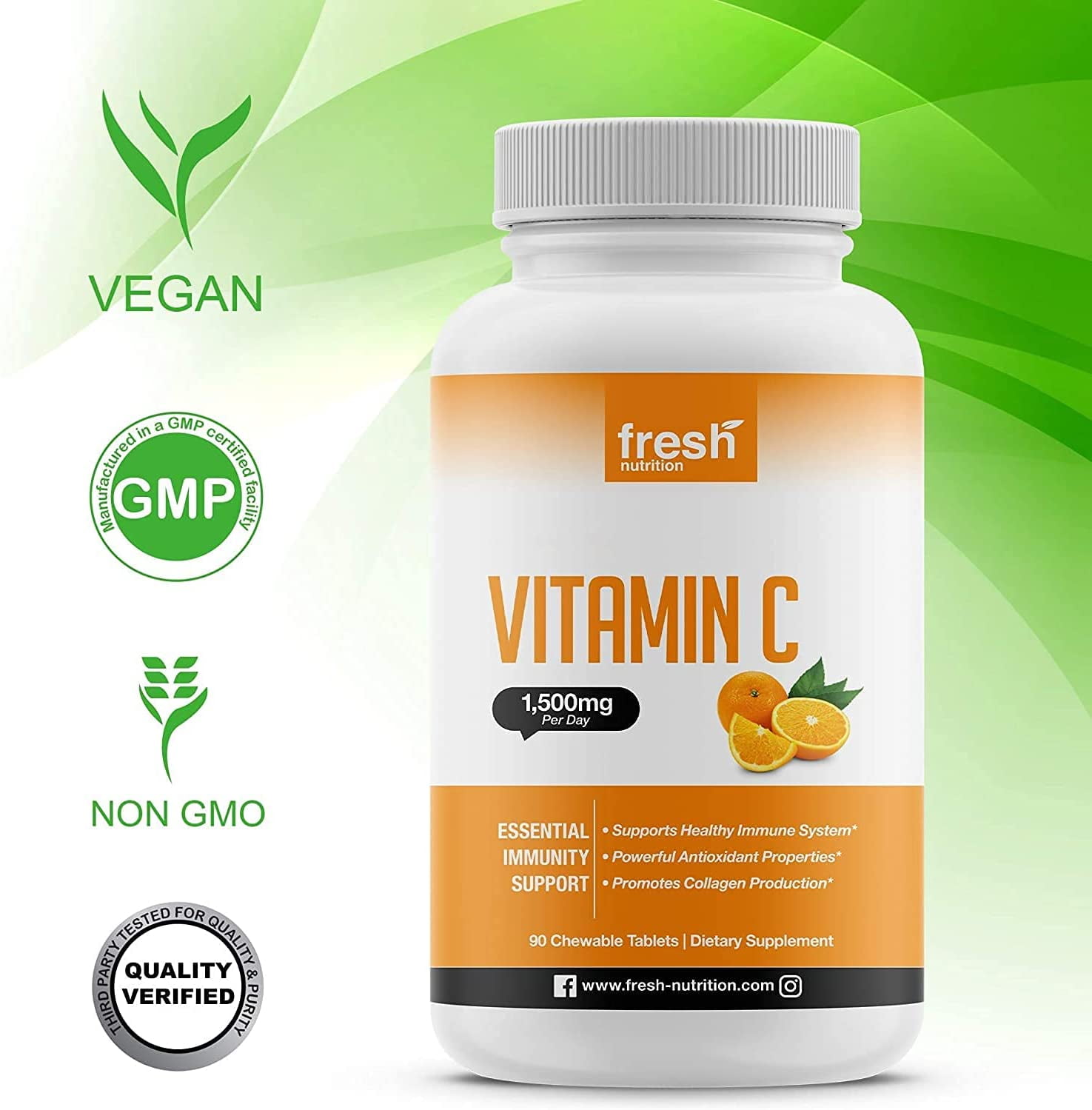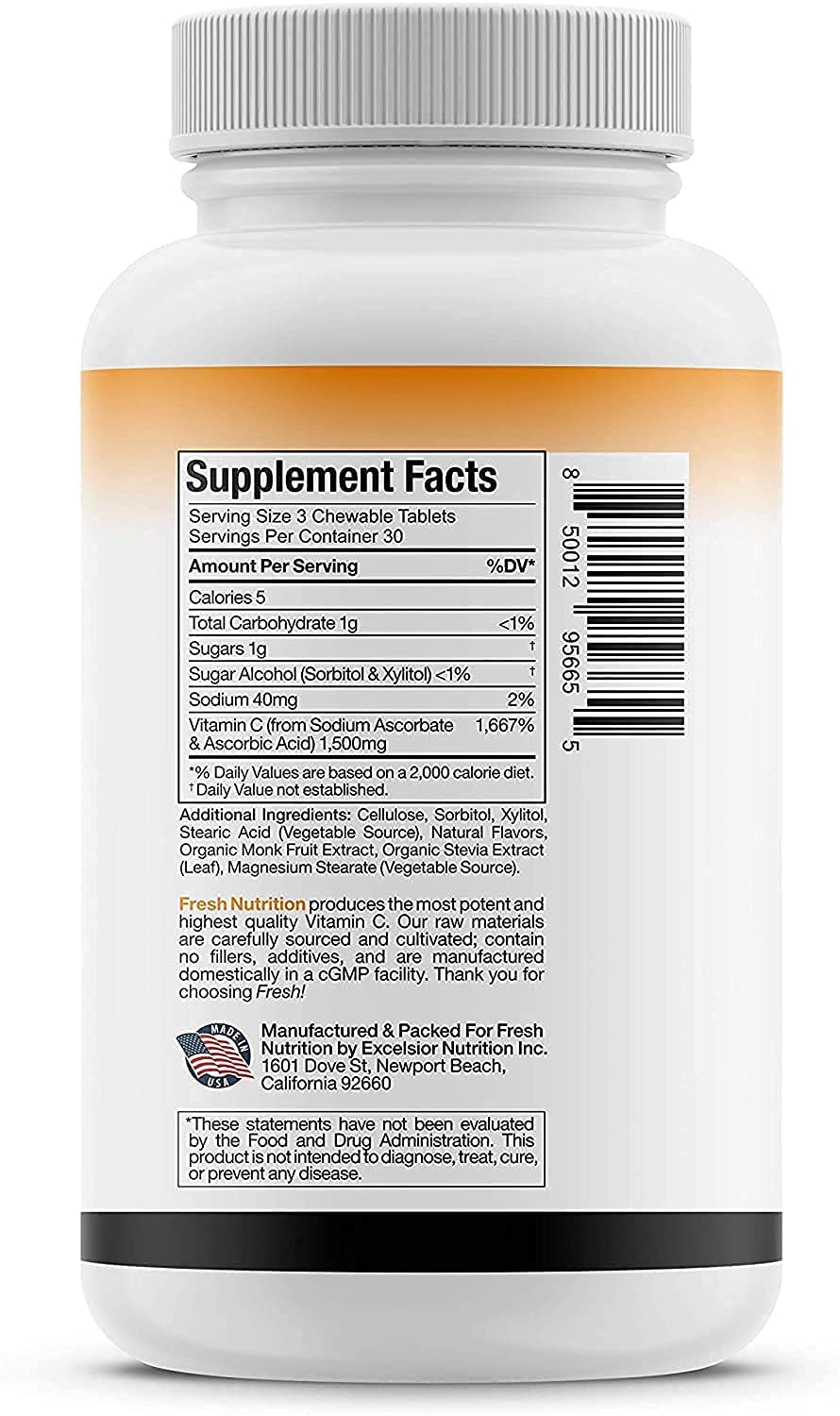 Fresh Nutrition Vitamin C Chewable Supplement – 1500mg per Serving Vit C