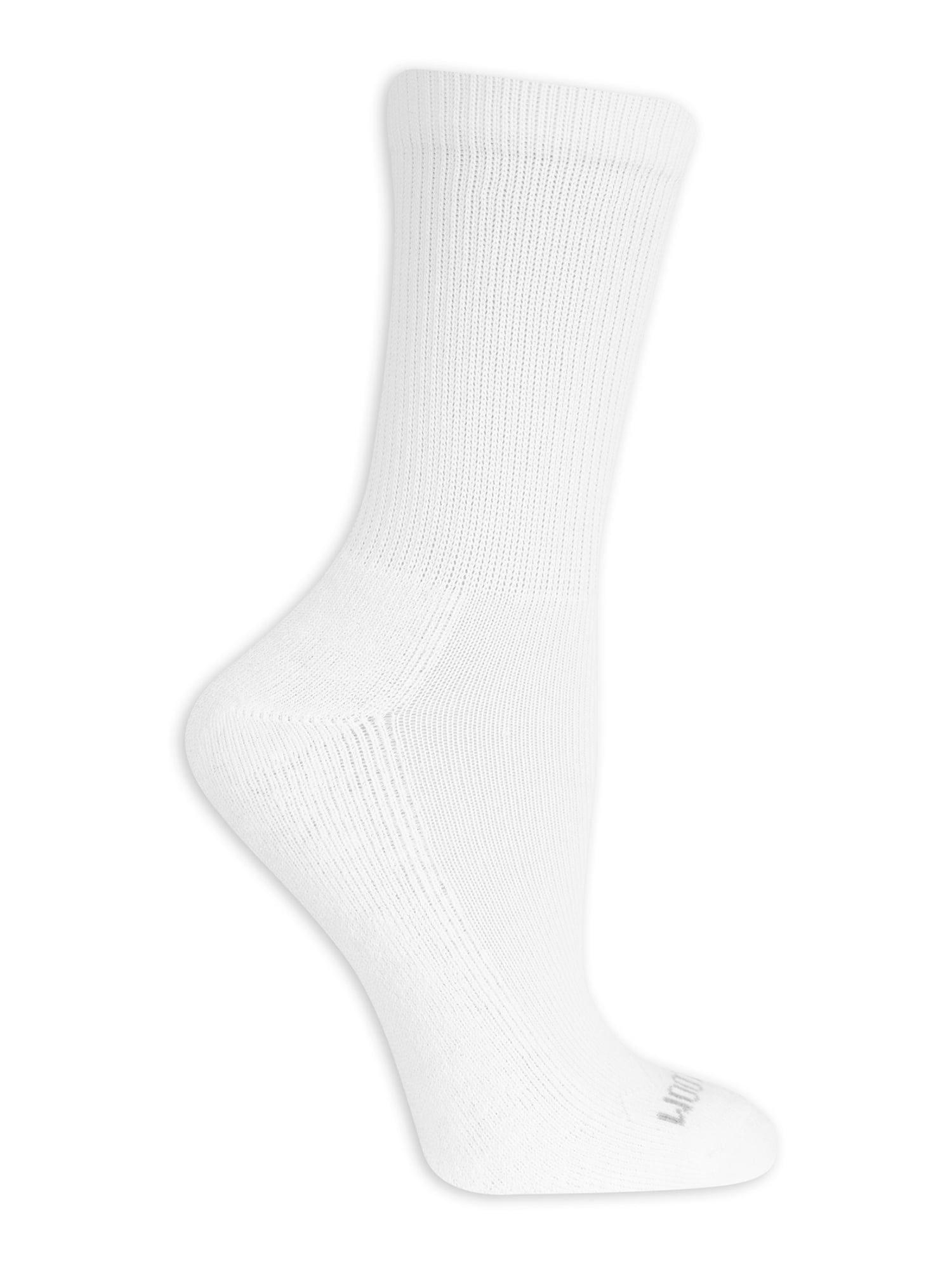 Fruit of the Loom women’s crew socks with softer-than-ever polyester yarn for everyday comfort are a must-have for your collection. Made with thicker, padded cushioning for a more comfortable feel, this 10-pair value pack of socks for women now features moisture wicking to keep feet drier. Spandex is knitted throughout for the perfect amount of stretch and a better fit. Feel the softness and look good with classic Fruit of the Loom basic colors that are perfect for any occasion.