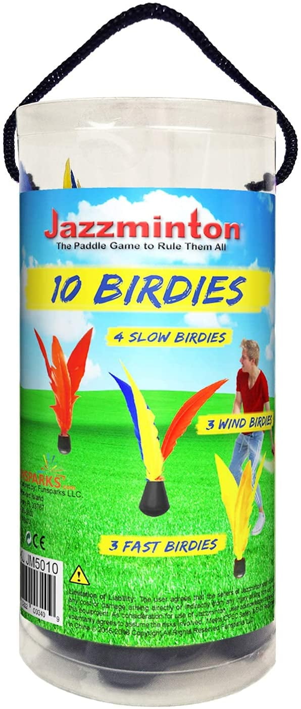 Endless Fun! Amazing indoor games and outdoor games for kids & adults – The birdies slow as they spin creating an exciting game with long rallies great for all ages. You can even play over a badminton net, a great way to introduce racket sports to children or beginners. Contains 10 birdies – 3 colorful birdies to play in strong wind, 3 yellow for faster play, and 4 red for slow. Jazzminton is a great way to increase hand-eye coordination, motor skills and keeps you active. Great value – 10 goose feather shuttlecocks for any playing condition; Indoors, outdoors in strong wind or at the water. Grab your friends and family and get outside for some active fun away from phones, TV, and video games. Reliable birdies – Our shuttlecocks are made from real feathers that are attached with a water-resistant glue to ensure nothing breaks if playing at the pool, beach, or even if it rains. Great for improving coordination, motor skills and keeps you active away from phones, TV, and computers.