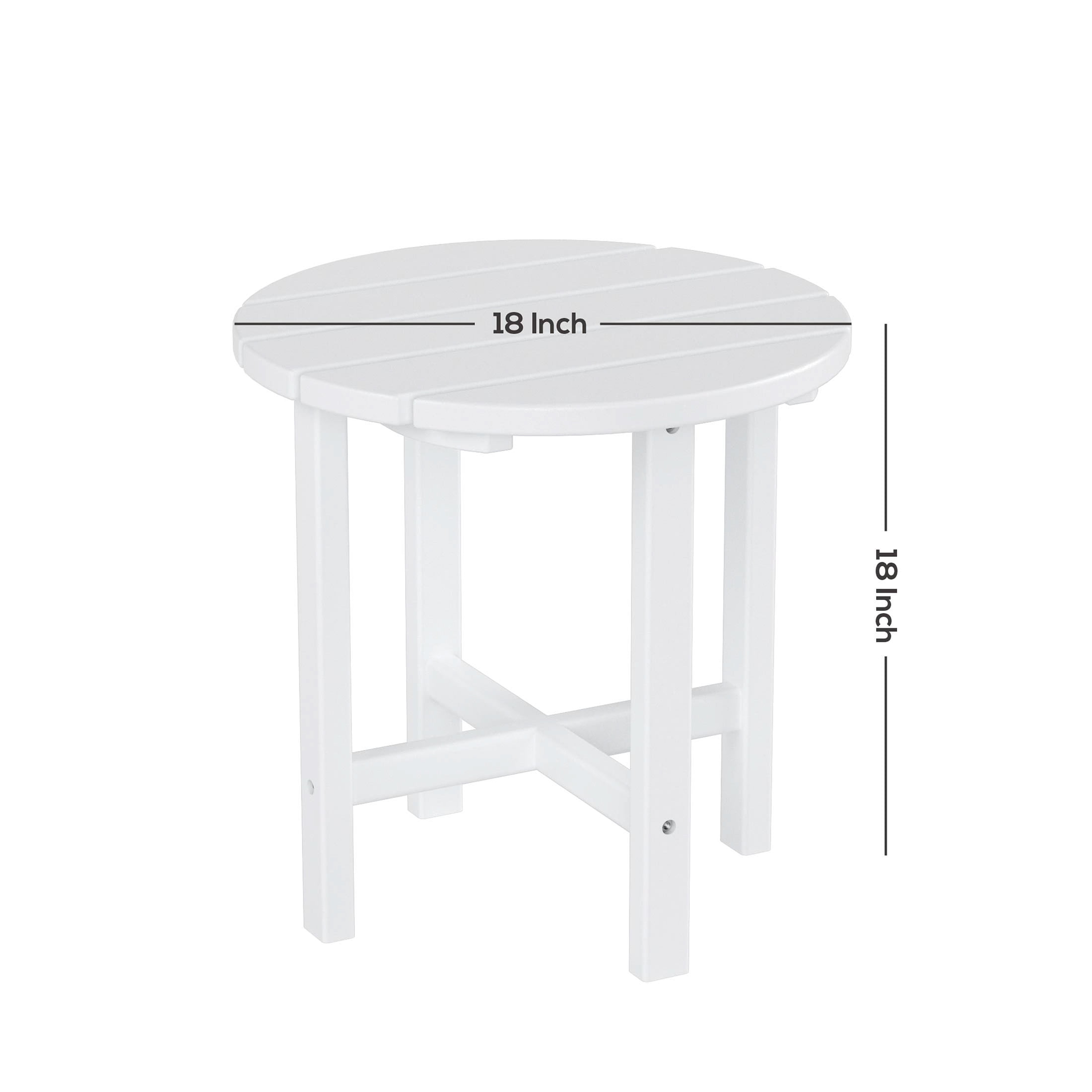 Add a much-needed outdoor patio end table into your outdoor living space with this stylish and classic Adirondack style round accent end table. Made with a durable HDPE plastic frame and completed with rust-resistant hardware that will last the test of time. Featuring a slatted tabletop that can be easily mixed and matched with your existing Adirondack patio furniture. You’ll appreciate the look of this end table beside your conversation set or lounge chairs. This outdoor side table will add a transitional and modern style to your backyard, patio, deck, or porch and will make entertaining more functional. Enjoy outdoor living year-round with the weather and UV-protected finish to help keep its rich vibrant color for many years of use. Available in a variety of must-have colors that will complement any outdoor home decor. The Adirondack outdoor side table is a versatile complement for relaxing on porches, decks, patios, or out in the garden. A perfect addition to any porch, deck, balcony, or firepit. Multi-functional because it can be used outdoor or indoors when needed. A perfect outdoor side & accent table for any chair.