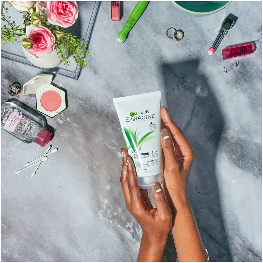 Use Garnier SkinActive Deep Pore Exfoliating Scrub to help change the look and feel of your skin. This product is formulated with green tea and is able to decongest skin and gently exfoliate to reduce the appearance of pores. Your skin will be left smoother with a refined texture. This green tea face scrub is suitable for sensitive skin. It comes in a tube that contains 5 fl oz. This formula can make a useful addition to the rest of your skin care products and beauty supplies. Make it part of your daily face cleaning routine and start getting the impressive results you want.