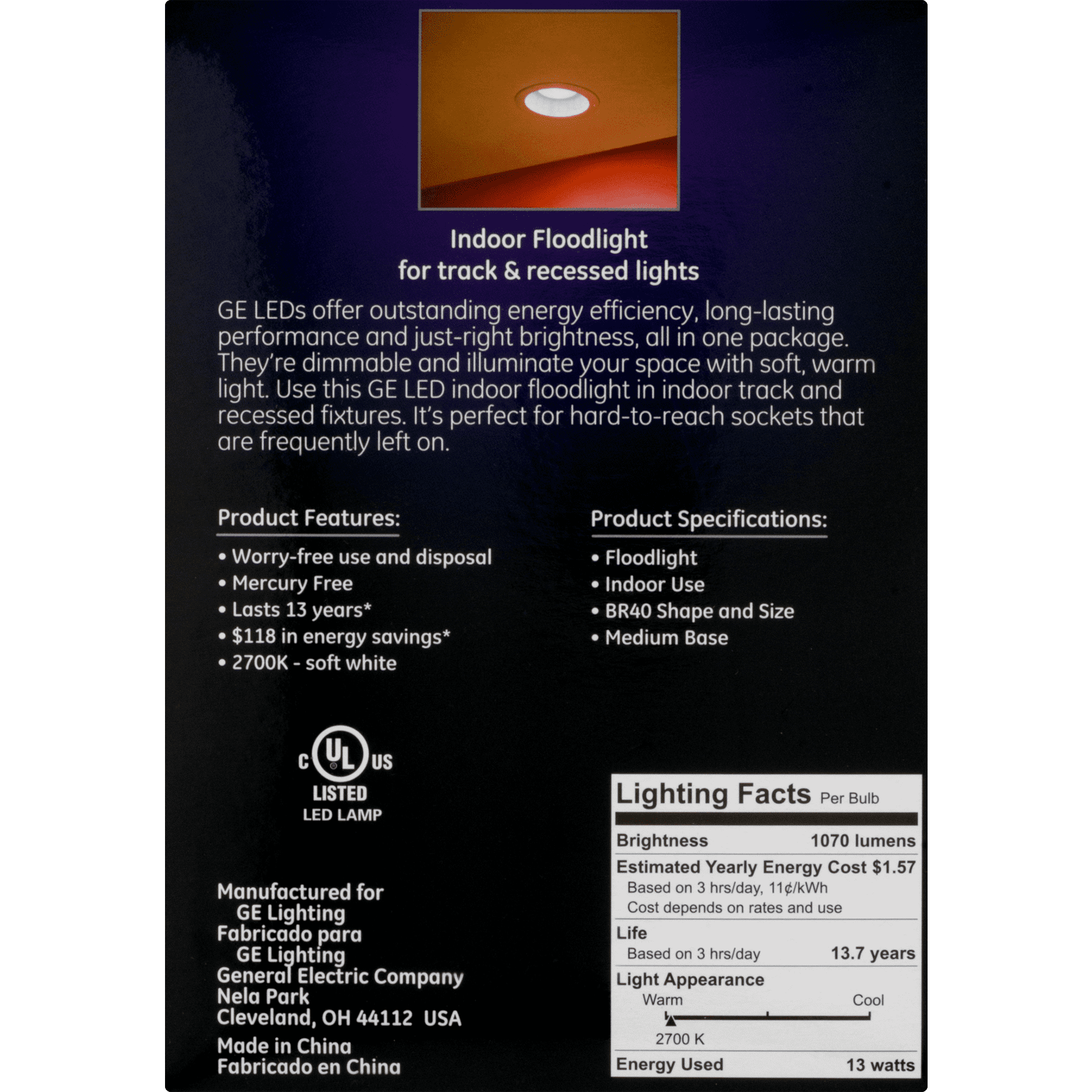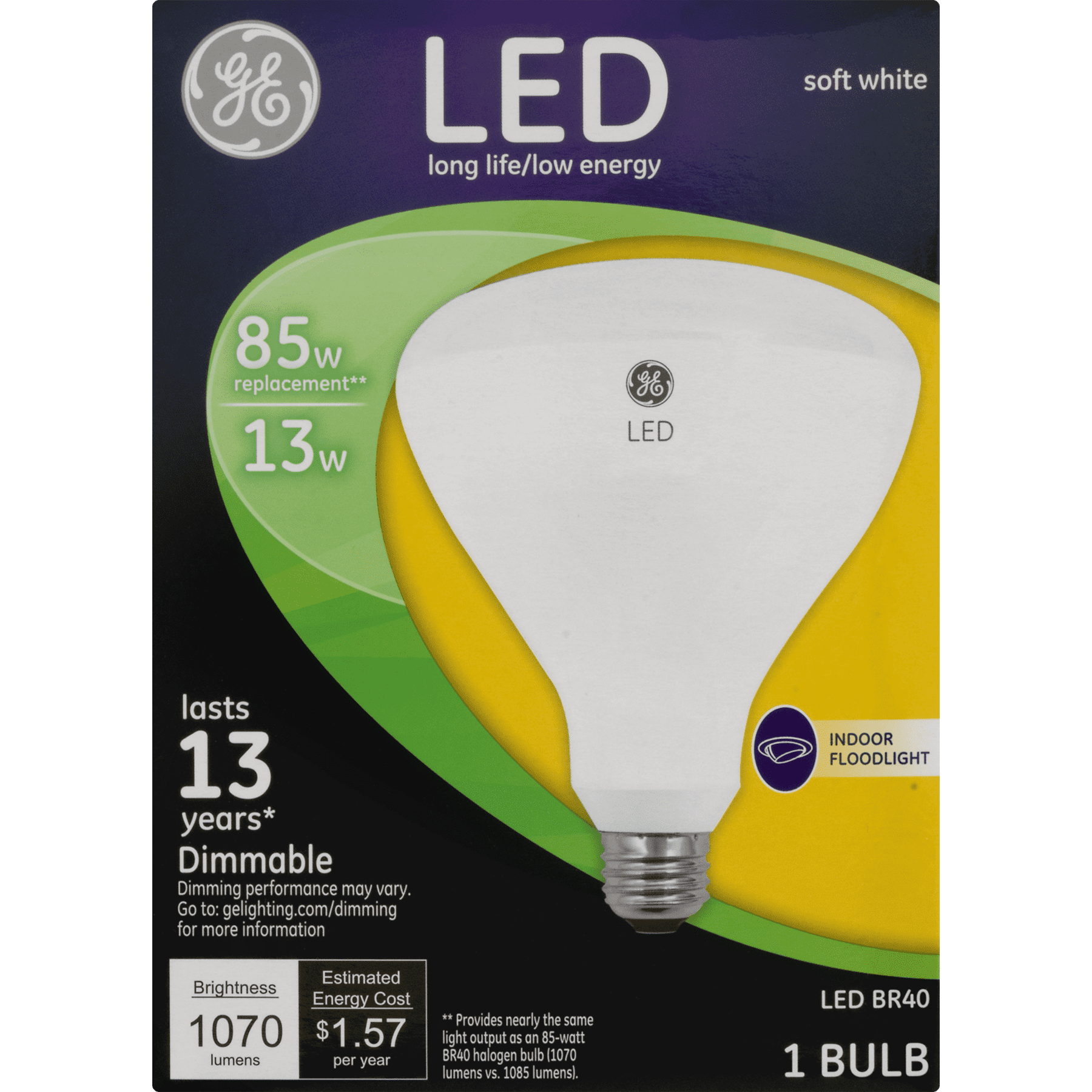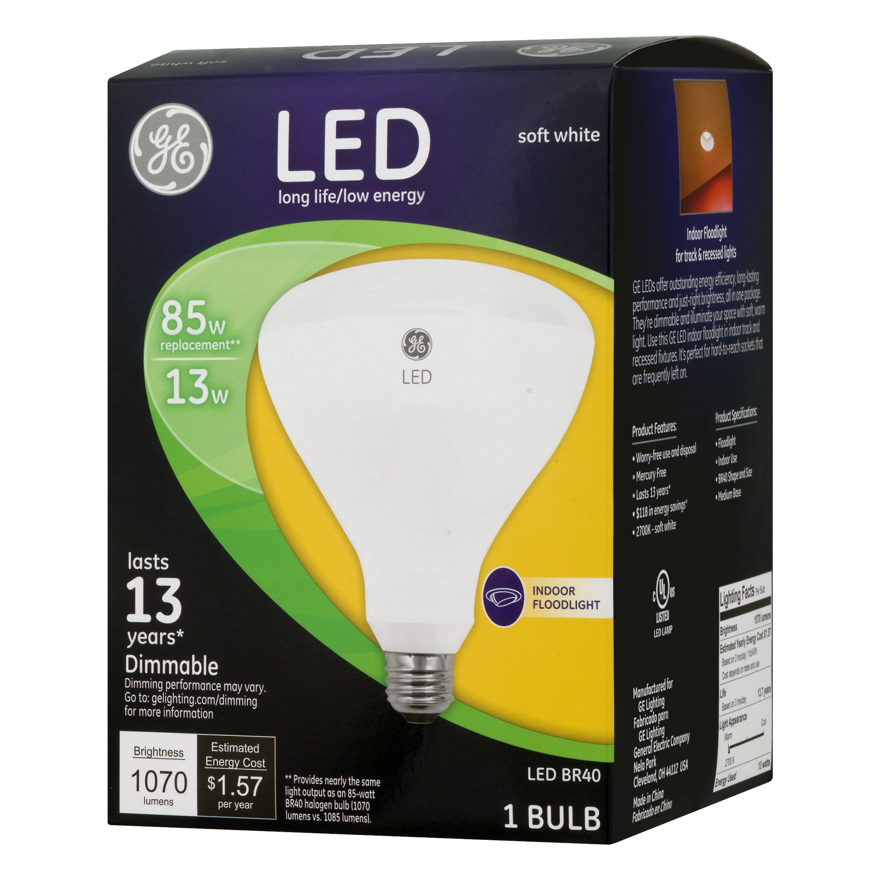 - **Provides nearly the same light output as an 85-watt BR40 halogen bulb (1070 lumens vs. 1085 lumens).
