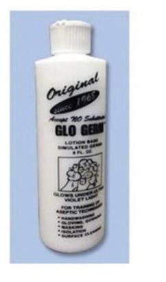 Product detailsGlo-Germ Hand-Washing Product in gel form 8 oz bottle is used to demonstrate proper hand washing techniques. Glo-germ that makes learning proper hygeine techniques fun is a safe product that reveals simulated germs when exposed to UV light.Features8 oz Products GelSpecificationsCapacity: 8 ozCountry of Origin: United StatesSafety: No Choking HazardAllergens: Contains No AllergensMaterial: Gel- SKU: SSPC275017Glo-Germ 588646 8 oz Products GelGlo-Germ 588646 8 oz Products Gel