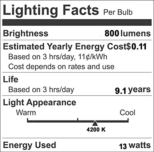 - Energy-efficient light bulb with two prongs; 4200 Kelvin; 800 Lumens; 120 Volt; 13 Watt; Equivalent to a 60 W incandescent bulb; Life span: 8,000+ hours; GU24 twist and lock base