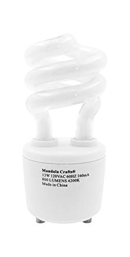GU24 Light Bulb – CFL 13 w 120 v 60 hz Light Bulb – Compact Fluorescent Lightbulb with Two Prong Base T2 Mini Spiral 4 Pack 4200K Cool White by Mandala Crafts